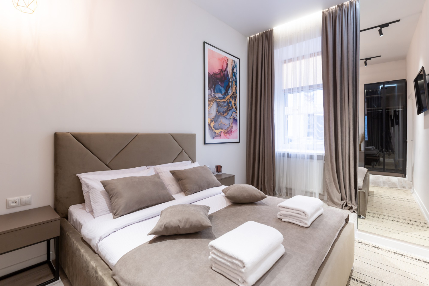 - Низкие (25–40 см с матрасом) создают эффект подиума и визуально «расширяют» спальню.