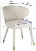 Обеденный стул в белом шенилле — нежный акцент для пространств, где важна лёгкость и утончённость. Его плавные очертания, мягко обволакивающие спинка и сиденье, создают ощущение невесомости — будто вы садитесь не на мебель, а в облачную подушку. Ткань с фактурой шенилла переливается при свете, словно покрыта тонкой пылью из света, добавляя интерьеру глубины без ярких цветов. Тонкие наконечники из золотого металла с тёплым отливом завершают образ — они не доминируют, а поддерживают, как ноты в тихой мелодии. Идеален для кухни или столовой в скандинавском духе, неоклассике или фьюжне — там, где ценится дизайнерская мебель, способная дышать вместе с пространством. Этот предмет — не просто элемент обстановки, а ключ к функциональному интерьеру, где комфорт и эстетика существуют в полной гармонии. Габариты сиденья: ширина 47.5см, глубина 45см, высота от пола 50см.