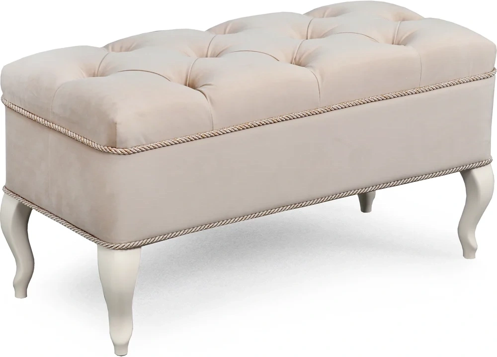 Каретная стяжка на высококачественном велюре, декоративные канты, опоры "кабриоль" из натуральной древесины (береза) сделают банкетку №15 изюминкой Вашего интерьера.