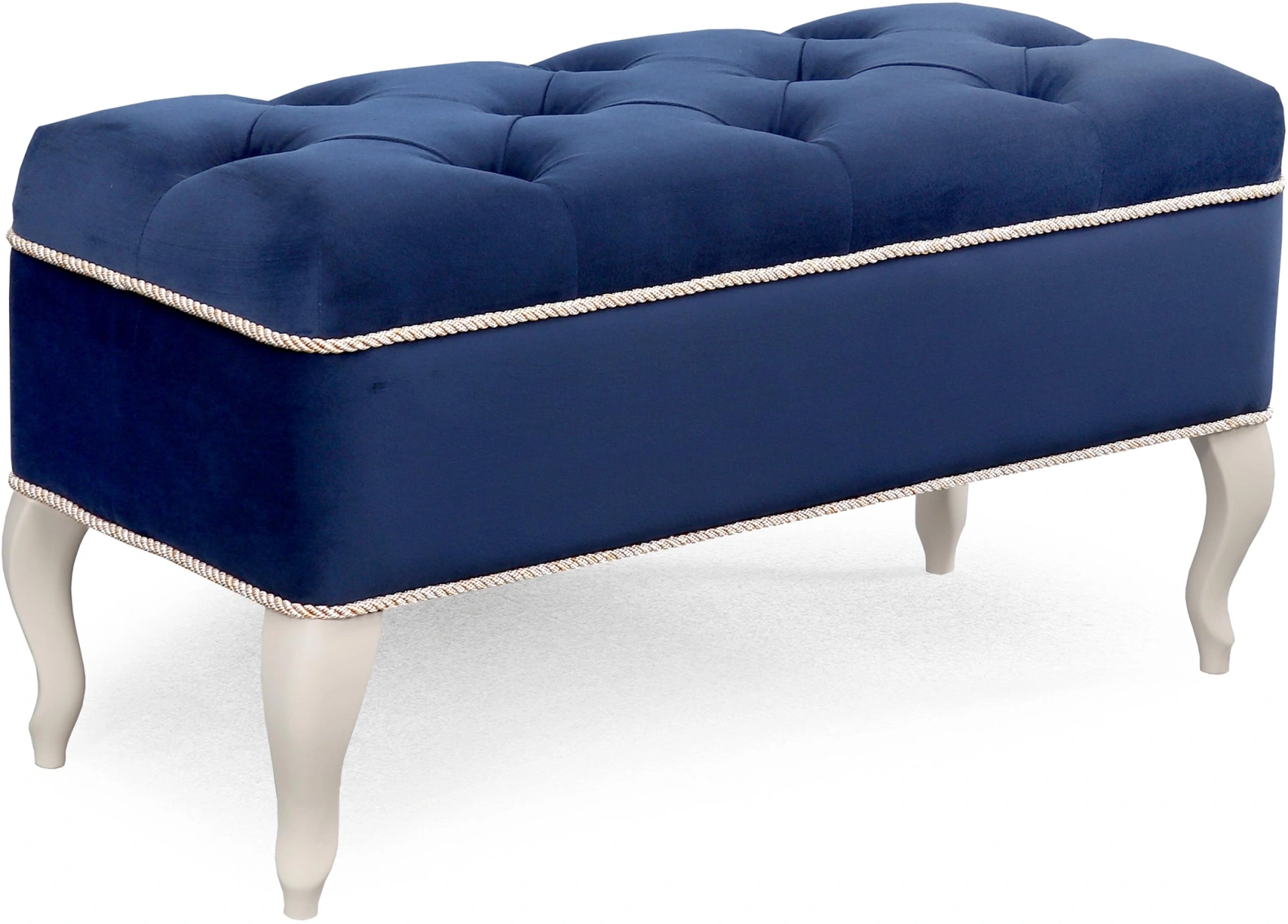 Каретная стяжка на высококачественном велюре, декоративные канты, опоры "кабриоль" из натуральной древесины (береза) сделают банкетку №15 изюминкой Вашего интерьера.