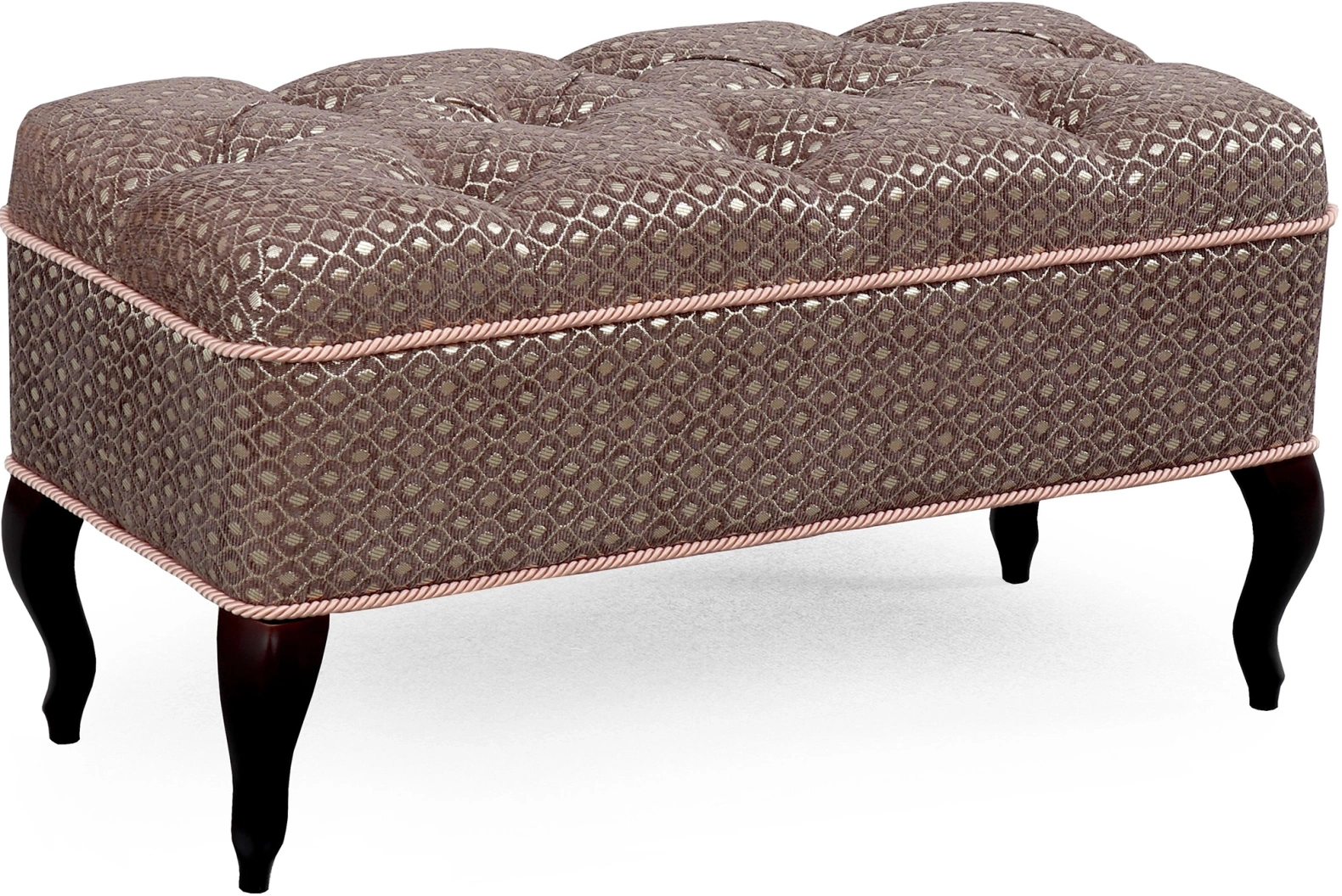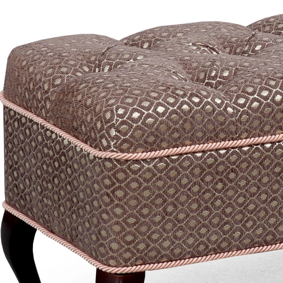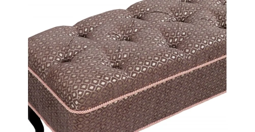 Каретная стяжка на высококачественной ткани, декоративные канты, опоры "кабриоль" из натуральной древесины (береза) сделают банкетку №15 изюминкой Вашего интерьера.