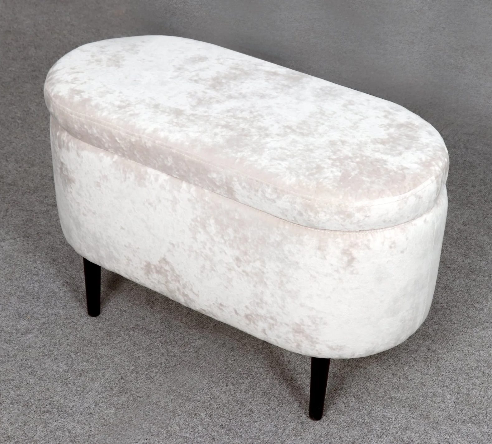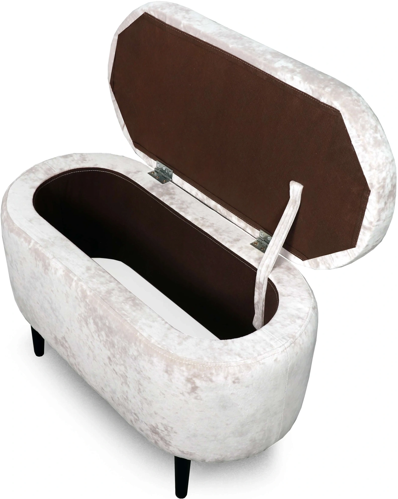 Мягкая обивка в ткани велюр с краш-эффектом добавляет приятный объем и украшает изделие. Опоры выполнены из массива берёзы и имеют защитные войлочные наклейки. Банкетка хороша не только в гостиной, но и в спальне, на кухне и в детской комнате. Максимальная нагрузка 100 кг.