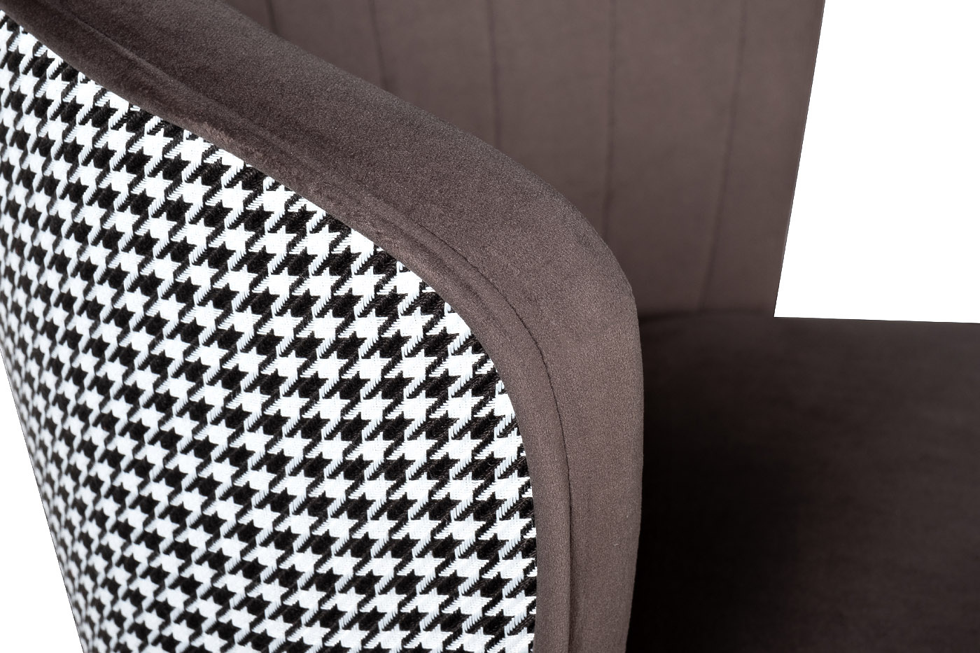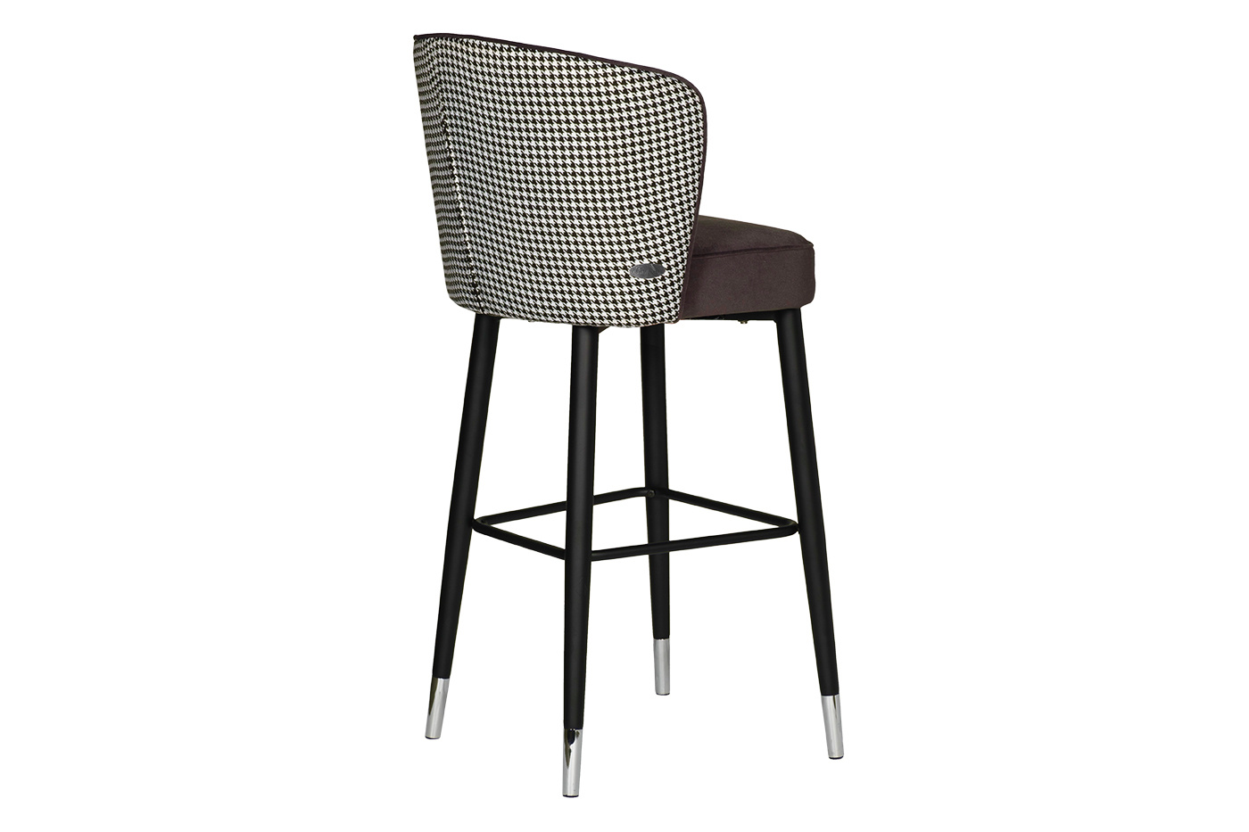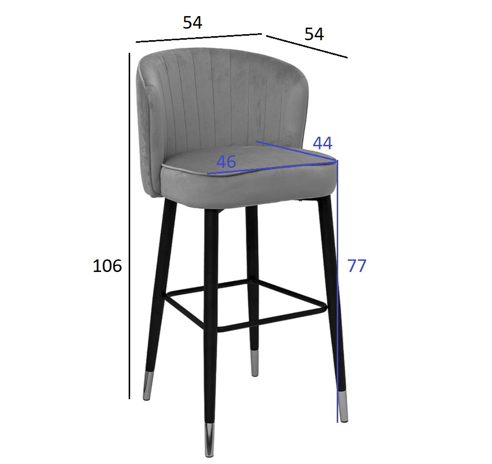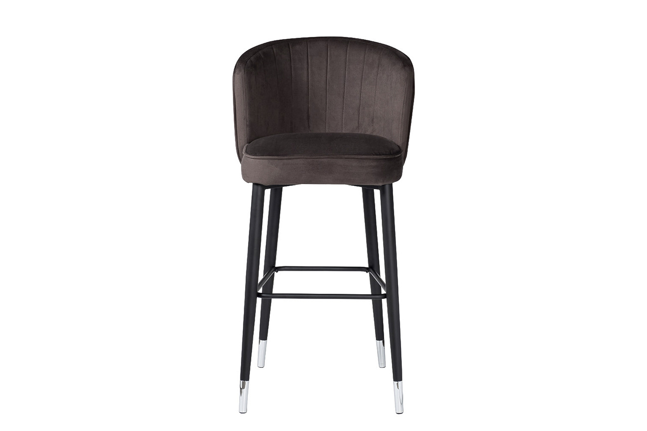 Велюровый барный стул – стильный предмет мебели в нестандартном исполнением. Такая модель однозначно понравится людям, которые ценят элегантность и стильное оформление. Барный стул со спинкой подойдёт для различного интерьера от минимализма до современного арт-деко. Тыльная сторона спинки барного стула украшена орнаментом «гусиная лапка» и вертикальным швом с застежкой-молнией, а обивочная ткань из серо-коричневого велюра создаёт особенно мягкую и приятную поверхность. Модель порадует своим оригинальным дизайнерским решением, комфортом и практичностью. Габариты сиденья: ширина 46см, глубина 44см, высота сиденья -77см. По оттенку cеро-коричневого велюра и спинки в ткани "гусиная лапка" сочетается со стулом 30А-1232 GR