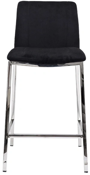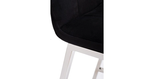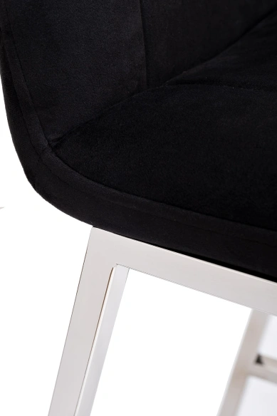 Стильный барный черный стул станет эффектным дополнением барной стойки и привнесет в обстановку нотку современной роскоши. Он прекрасно подойдет для просторной кухни, студии с открытой планировкой, комнаты отдыха. Велюровые барные стулья заметно отличаются от классических моделей за счет своей роскошной обивки. Высокие ножки, устойчивый прочный каркас, удобная стальная ступенька – все эти конструктивные особенности обеспечивают повышенный комфорт. Высокие барные стулья с металлическими ножками универсальны в интерьерном плане – они органично вписываются в стилистику ар-деко, классика, минимализм, лофт, модерн. Габариты сиденья: ширина 42см, глубина 38см, высота от пола 65см