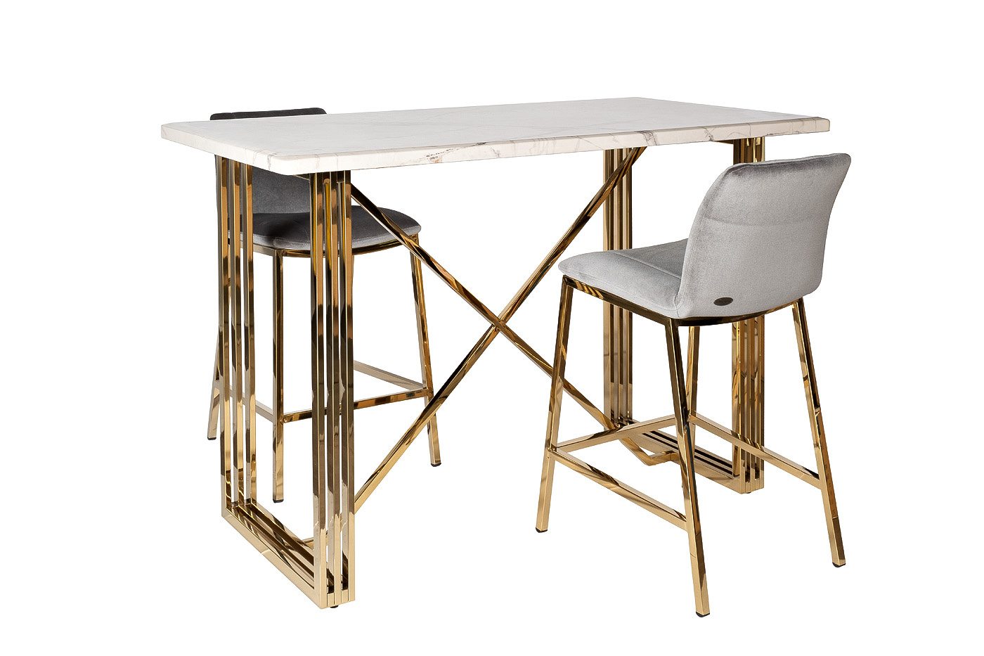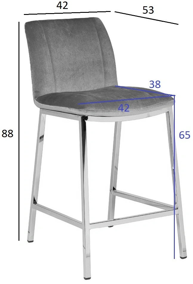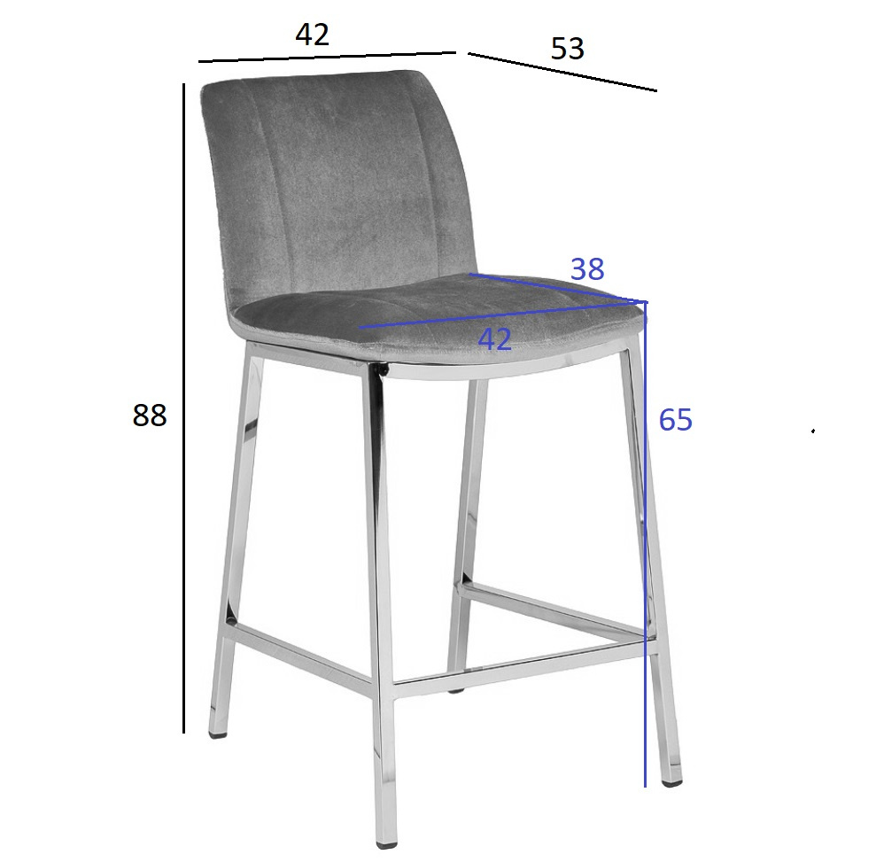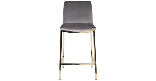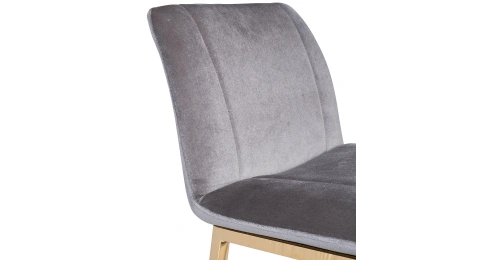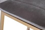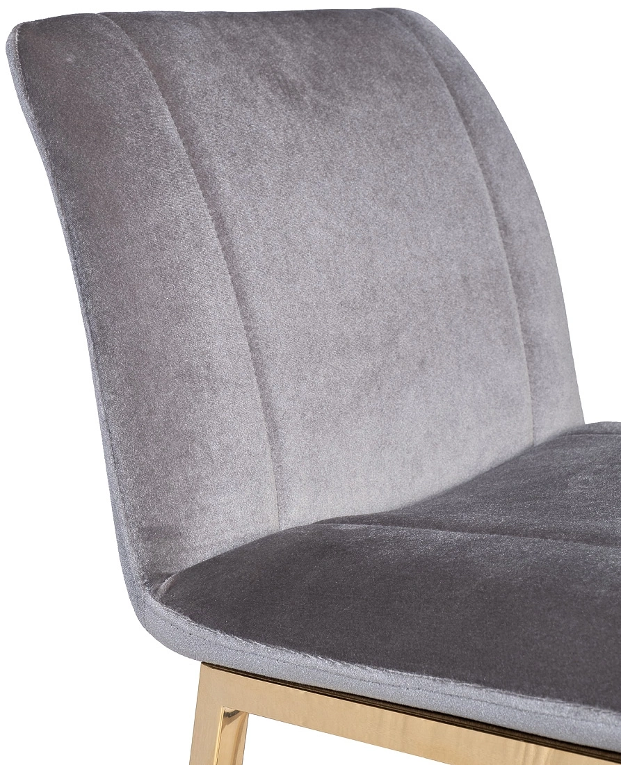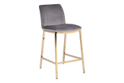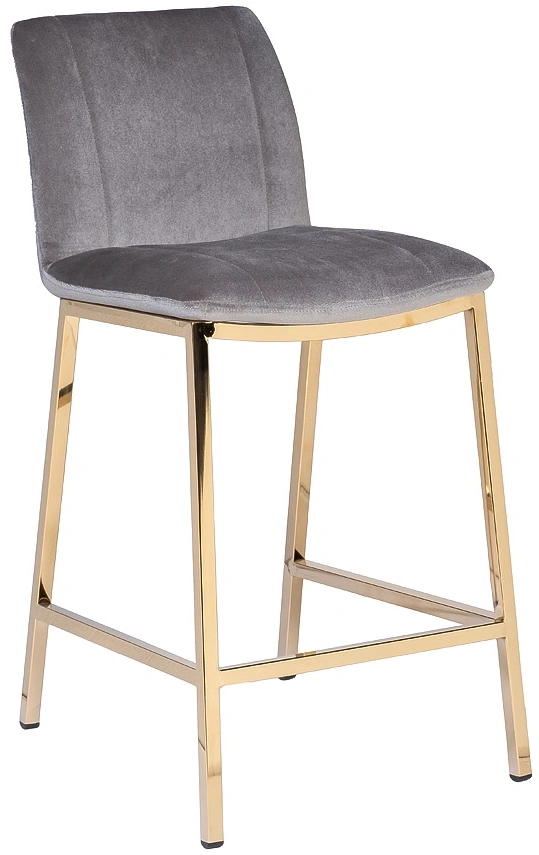Удобный барный стул из сергого велюра на позолоченном основании из нержавеющей стали. Серый велюровый барный стул – стильный и элегантный в своем дизайне. Его сложно назвать универсальным, поскольку красота этой модели предъявляет высокие требования к общей обстановке кухни, бара, ресторана. Барный стул со спинкой воплощает в себе повышенный комфорт и способен занять центральное место в интерьере. Обивка из тактильно приятного велюра и ножки из позолоченного металла делают эту модель весьма заметной и привлекательной. Габариты сиденья: ширина 42см, глубина 38см, высота от пола 65см.