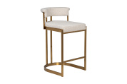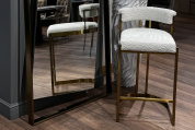 Барный стул букле — акцентный элемент современного интерьера, который отражает актуальные тренды в дизайне мебели. Его силуэт сочетает в себе легкость и графичность, а мягкая обивка делает посадку комфортной. Благодаря изогнутой спинке, создающей эффект обволакивающего уюта, стул подойдет как для домашнего острова, стильного бара или лаунж-зоны. Обивка из букле — настоящий хит в мире интерьерного текстиля. Ее фактурная поверхность добавляет глубины даже самым минималистичным интерьерам, а приятная на ощупь шероховатая структура придает мебели особую тактильную привлекательность. Каркас из металла в цвете матового золота подчеркивает трендовую эстетику, создавая гармоничный баланс между теплотой ткани и строгой графикой форм.