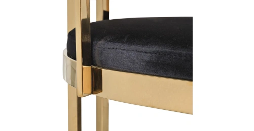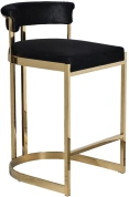 Дизайнерский барный стул дополнит интерьер роскошной кухни или столовой с барной стойкой, а также концептуального заведения в современном стиле иле стиле ар-деко. Прекрасный высококачественный велюр насыщенного черного цвета создает беспроигрышный ансамбль с золотой металлической опорой из полированной стали. Прочная конструкция, мягкое широкое сиденье и подушка на спинке, подставка для ног и классическая высота сделают стул идеальным элементом и настоящей изюминкой вашего бара. Наполнитель пенополиуретан. Размеры сиденья: В66,5*Г51см.