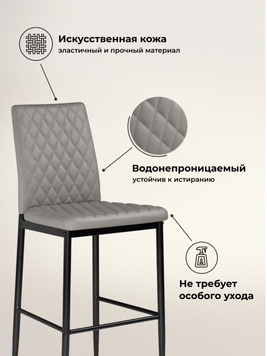 Барный стул Teon gray / black - это высокий и мощный стул, который станет идеальным выбором для вашего домашнего бара или кухни. Сиденье и спинка выполнены в классическом дизайне с декором на внутренней части, что придает стулу изысканный и элегантный вид. Удобная подножка для ног обеспечивает максимальный комфорт при использовании, а массивный металлический каркас обеспечивает прочность и долговечность стула. Сиденье стула обито искусственной кожей, которая не только выглядит элегантно, но и легко чистится. Стильный и функциональный, стул Teon - идеальный выбор для создания уютной и роскошной обстановки в вашем доме.