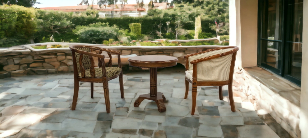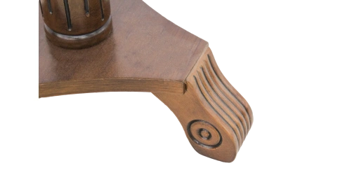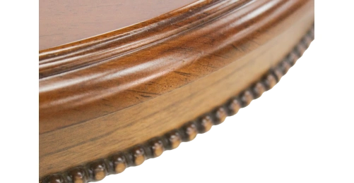 Цвет орех, столешница покрыта полуглянцевым лаком. На ножках есть резьба.
