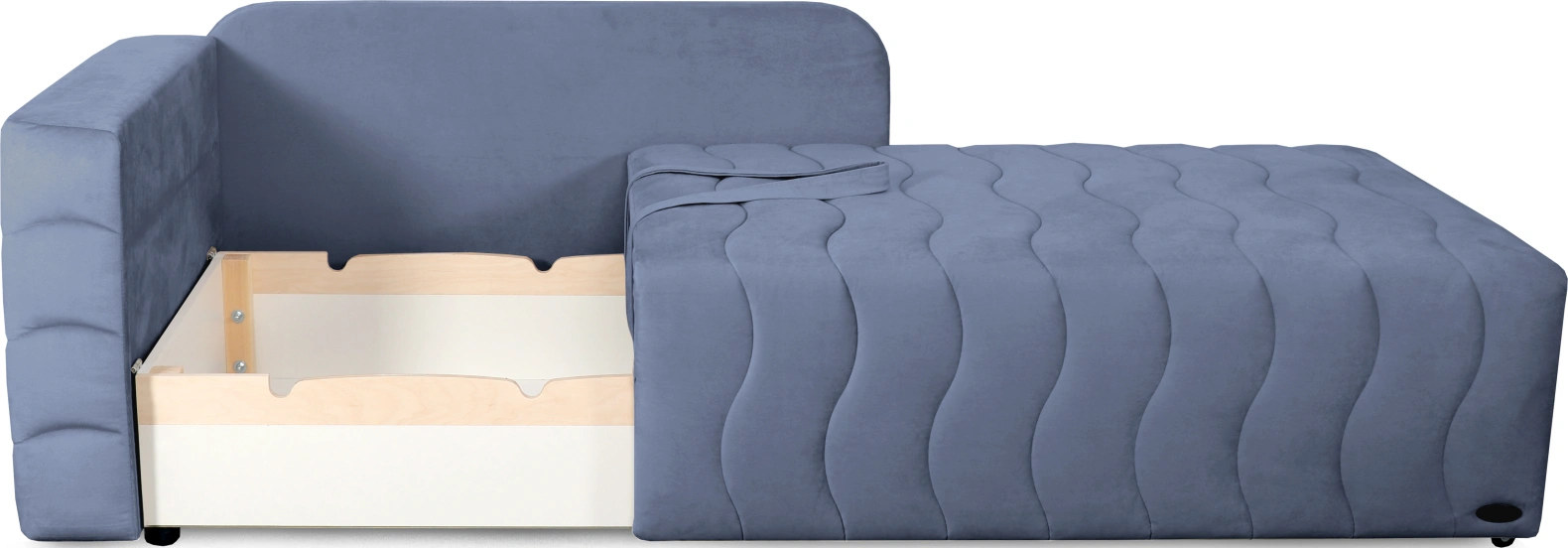 Диван при необходимости превращается в полноценную комфортную кровать, а вместительный бельевой ящик добавляет функциональности.