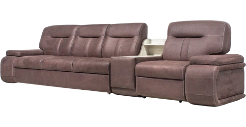 Его можно заказывать в разной комплектации: с креслом как на правую так и на левую сторону, так же и в прямом варианте как отдельно стоящий диван без модуля - боковое кресло, например, в комплекте с отдельно стоящим креслом по желанию клиента. За счет приставного пуфа диван может трансформироваться в угловой. Плавное и мягкое открытие механизма обеспечат каучуковые колесики.