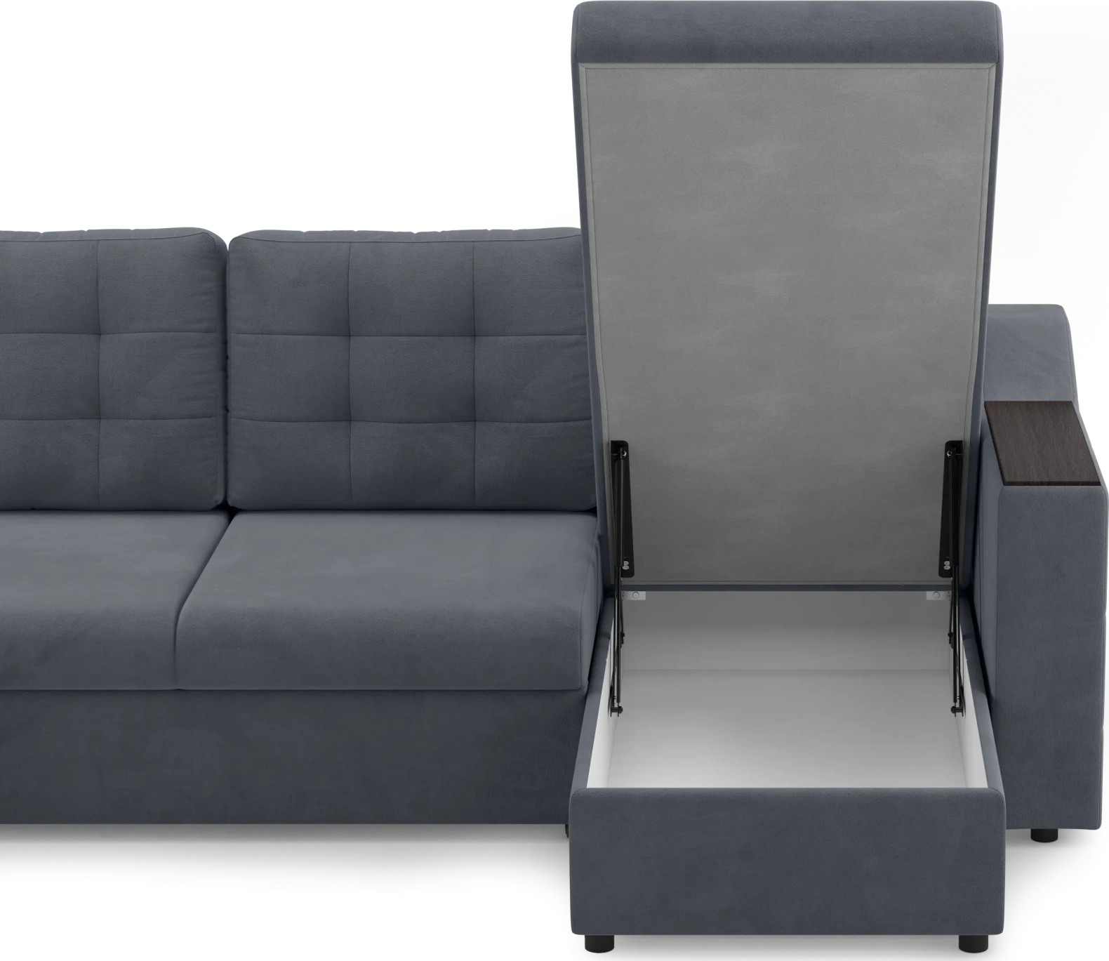 Одна из характерных особенностей Невада — широкие подлокотники с деревянными накладками. Они делают диван визуально аккуратнее, добавляют конструкции выразительности и удобны в быту: на них можно поставить чашку, книгу или телефон.