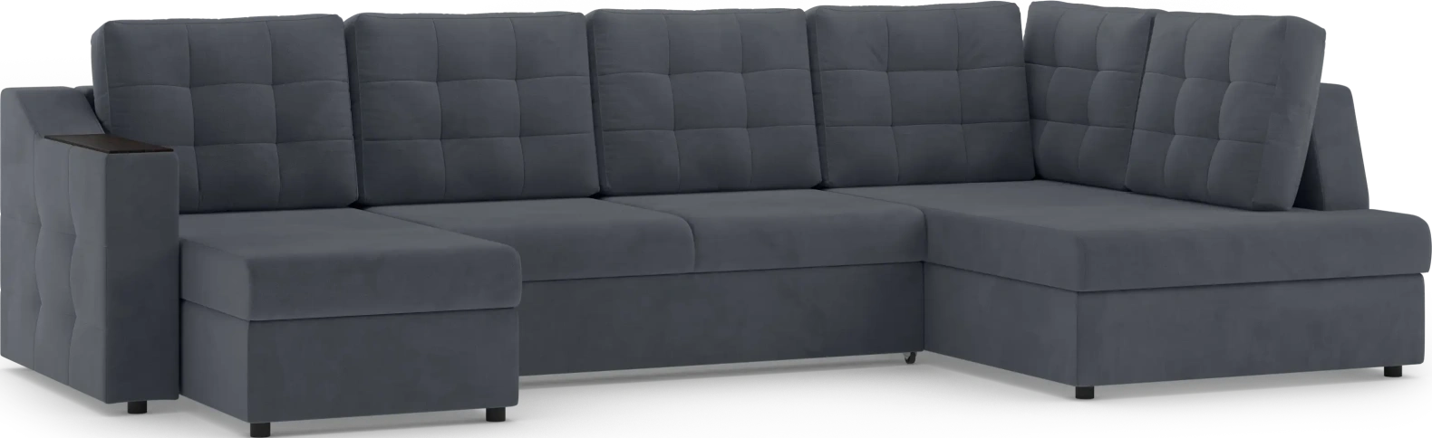 Диван П-образный Невада (модель 020, комплектация 5, правый, темно-серый) — просторная модель для большой гостиной, где важны комфорт, функциональность и максимум полезного пространства.