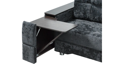 Диван из серии Атлант с современным дизайном, МДФ декором и удобным механизмом раскладывания. Модель выполнена на металлическом каркасе с наполнителем пенополиуретан, который выдерживает высокие нагрузки и быстро восстанавливает форму. Особенность модели - выдвижные ящики для хранения в подолкотниках. Раздвижной столик в стандартных комплектациях идет слева, на заказ можно изготовить столик справа.