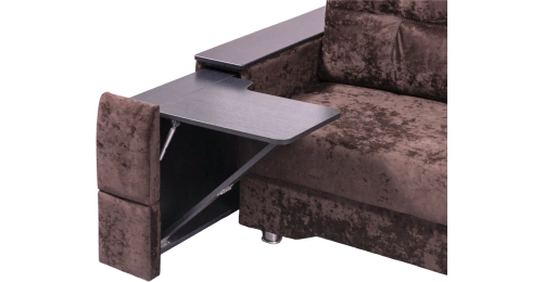 Диван из серии Атлант с современным дизайном, МДФ декором и удобным механизмом раскладывания. Модель выполнена на металлическом каркасе с наполнителем пенополиуретан, который выдерживает высокие нагрузки и быстро восстанавливает форму. Особенность модели - выдвижные ящики для хранения в подлокотниках. Раздвижной столик в стандартных комплектациях идет слева, на заказ можно изготовить столик справа. Выдвижной столик для мелочей - элегантное решение, не занимающее место в квартире. Столик может быть расположен как слева, так и справа. С другой стороны - выдвижные ящики.