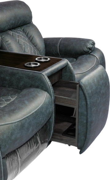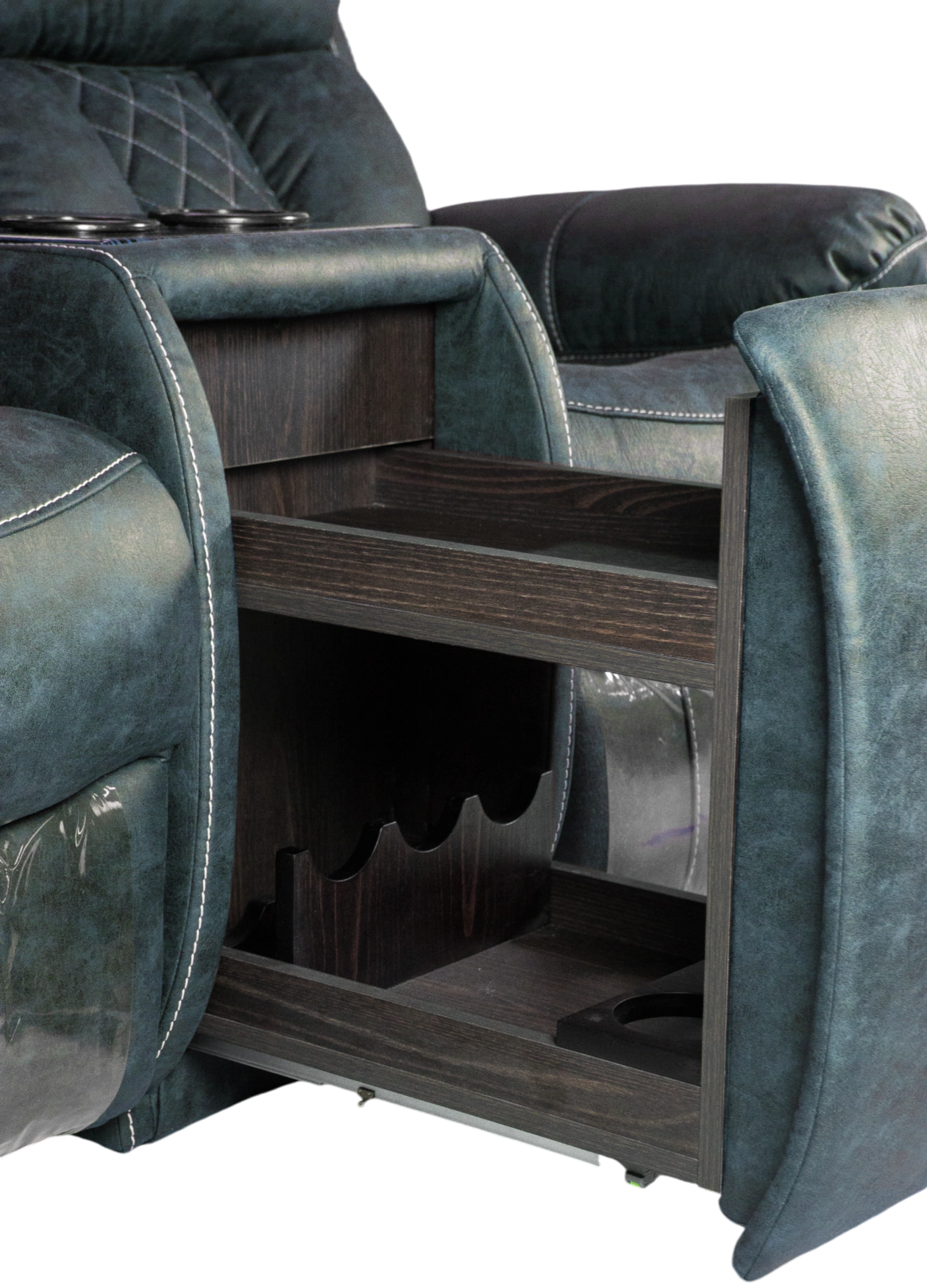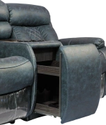 - Механизм: электрореклайнер — позволяет менять угол наклона спинки и положение подножки одним нажатием кнопки.