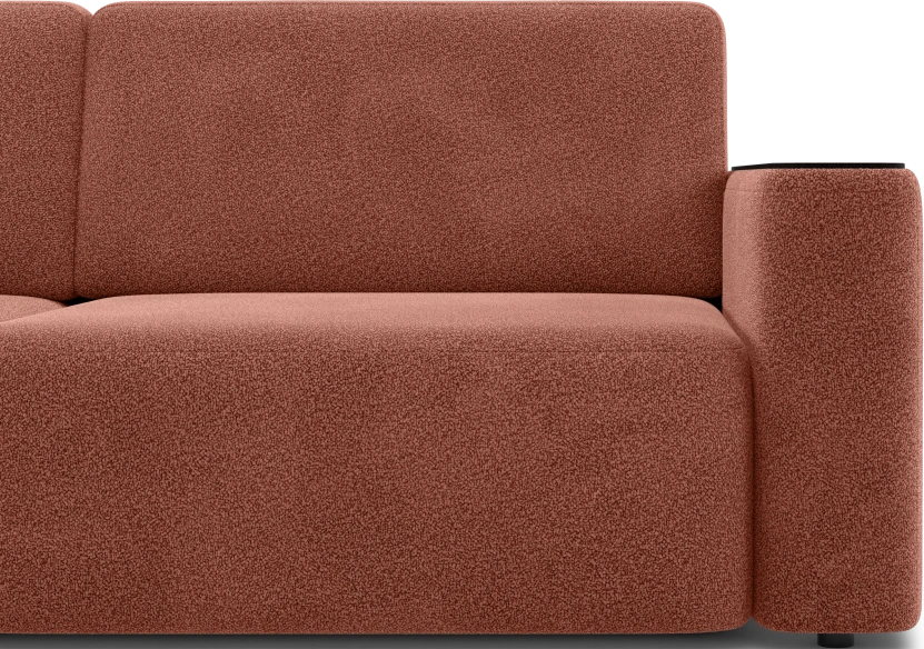 Спинка представлена объемными подушками, наполненными смесью из крошки и шарикового волокна (60%/40%) — они сохраняют форму и дарят мягкость.