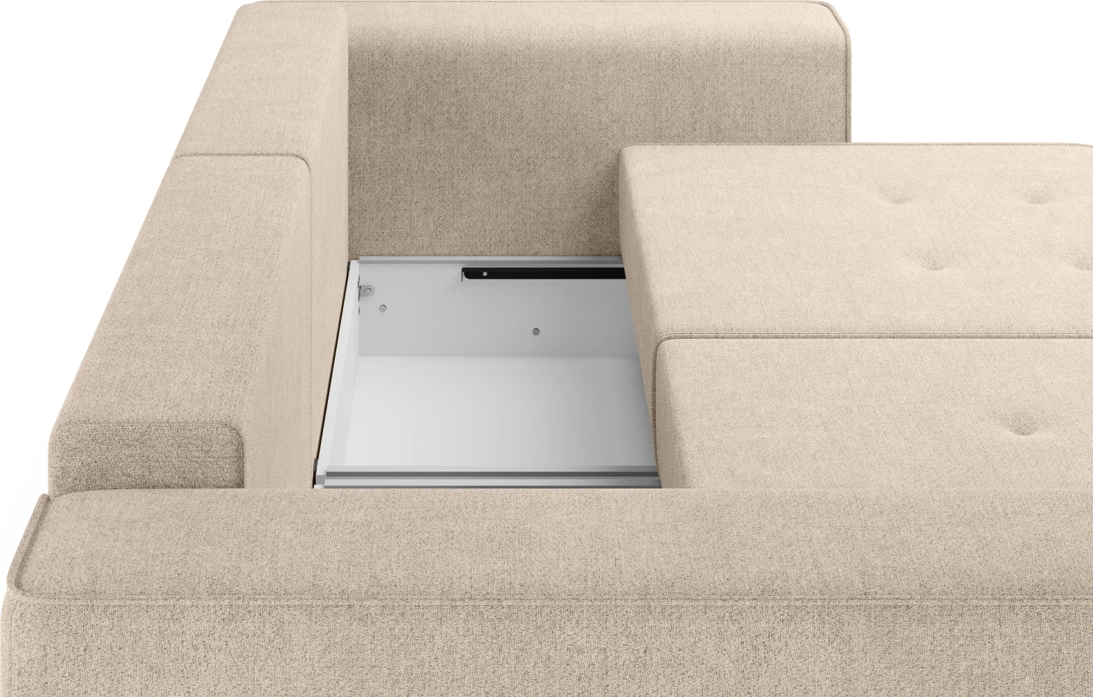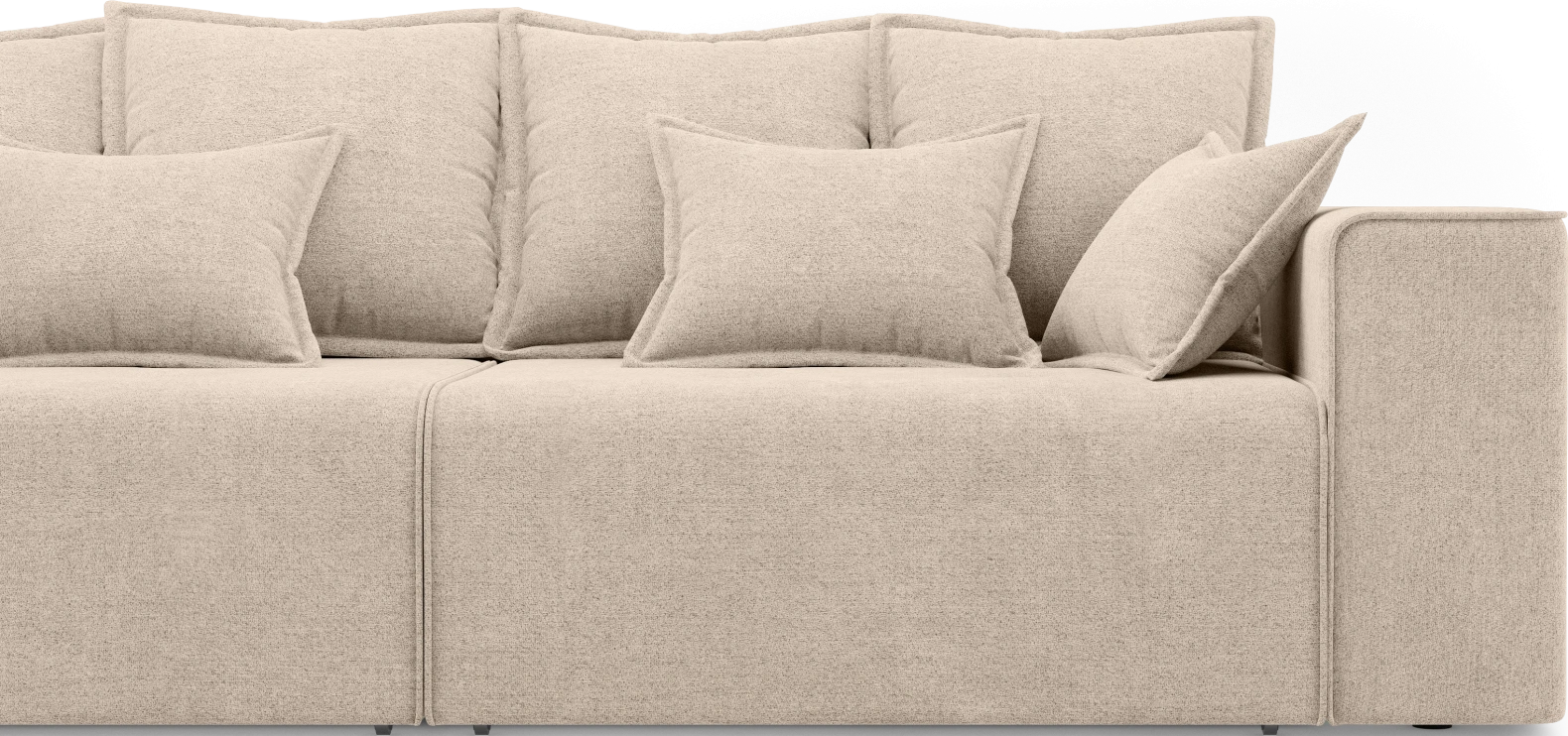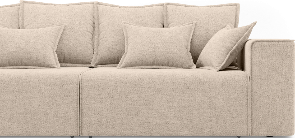 Спинка оснащена подушками, наполненными смесью крошки и шарикового волокна (60% крошка / 40% шар 15D64) — они хорошо держат форму и дарят ощущение мягкости.