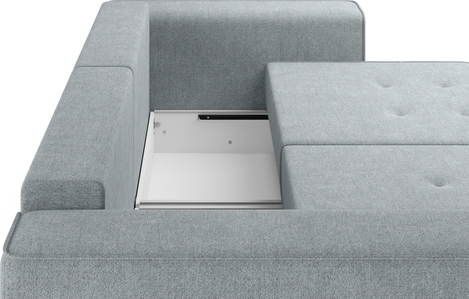 Спинка оснащена подушками, наполненными смесью крошки и шарикового волокна (60% крошка / 40% шар 15D64) — они хорошо держат форму и дарят ощущение мягкости.