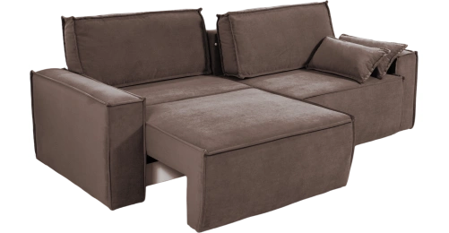 Независимый пружинный блок и большое спальное место позволяют использовать диван для ежедневного сна. Оттоманка выдвигается вперед и делает диван Лортон угловым, что очень удобно для творческих перестановок в квартире, тем более. Задняя часть выполнена в основной ткани и диван может смотреться выгодно с любой стороны.