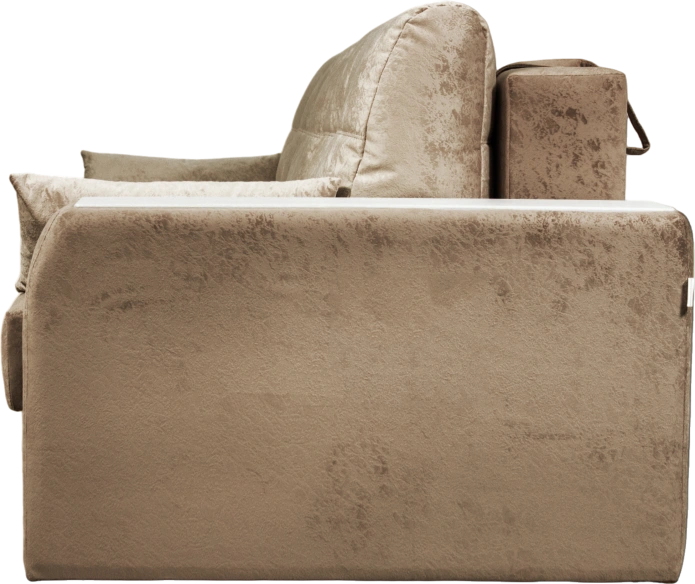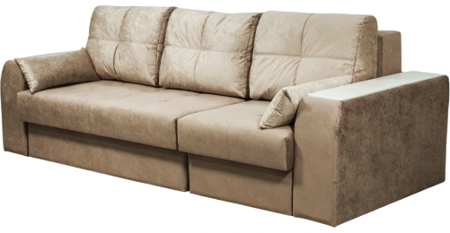 Возможно выполнить МДФ подлокотники с термоплёнкой в цвете – венге, орех и ясень бланко. Присутствует ящик для белья с вентиляцией. В открывающихся подлокотниках есть выемка для рук.