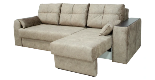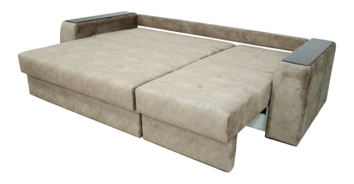 Доступно 84 цвета ткани для исполнения этого дивана. Под цвет пола или мебельного гарнитура вы можете подобрать МДФ подлокотники в цветах Венге, Орех и Ясень Бланко. Присутствует ящик для белья с выемкой для рук и с вентиляцией. Для легкости открывания подлокотника предусмотрена выемка.