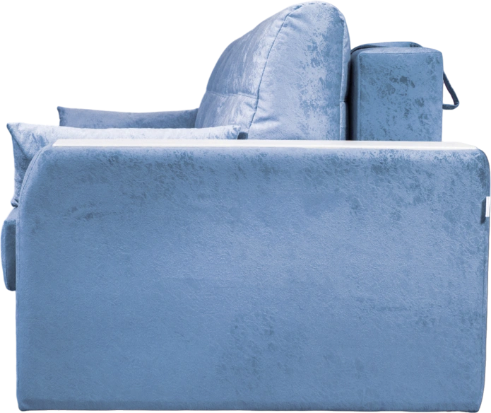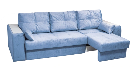 Изделие сочетается в одной, в двух или в трёх цветах мебельной ткани в комбинации с кожзамом. МДФ подлокотники с термоплёнкой в цвете – венге, орех и ясень бланко. Присутствует ящик для белья с выемкой для рук и с вентиляцией. В открывающихся подлокотниках есть углубление для рук.