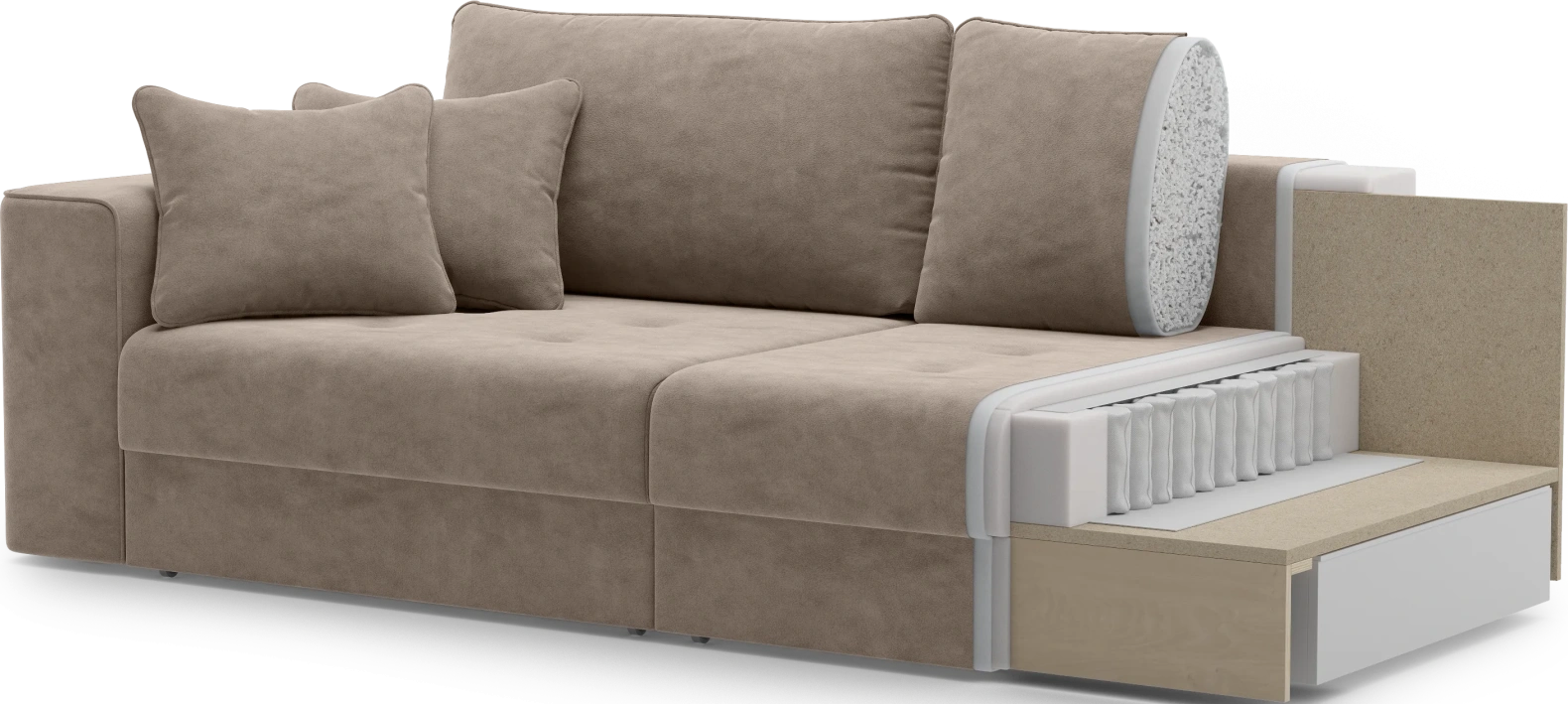 Диван подходит как основной — на нем удобно сидеть, отдыхать и проводить время каждый день. В данной модели используется механизм трансформации «еврокнижка», который позволяет быстро получить ровное спальное место для сна .