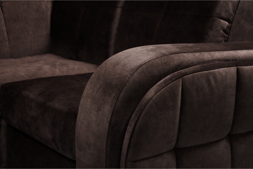 Особую статусность и элегантность ему придают подлокотники необычной формы с мягкими плавными элементами. Огромный выбор размеров и типов модулей позволяет составить диван для любого помещения. На диване удобно сидеть и спать: механизм аккордеон при раскладывании образует высокое ровное спальное место, по комфорту сравнимое с настоящими кроватями. Все модули могут быть исполнены с матрасами ППУ или НПБ высотой 12 см (исключение угловая секция - только с НПБ).