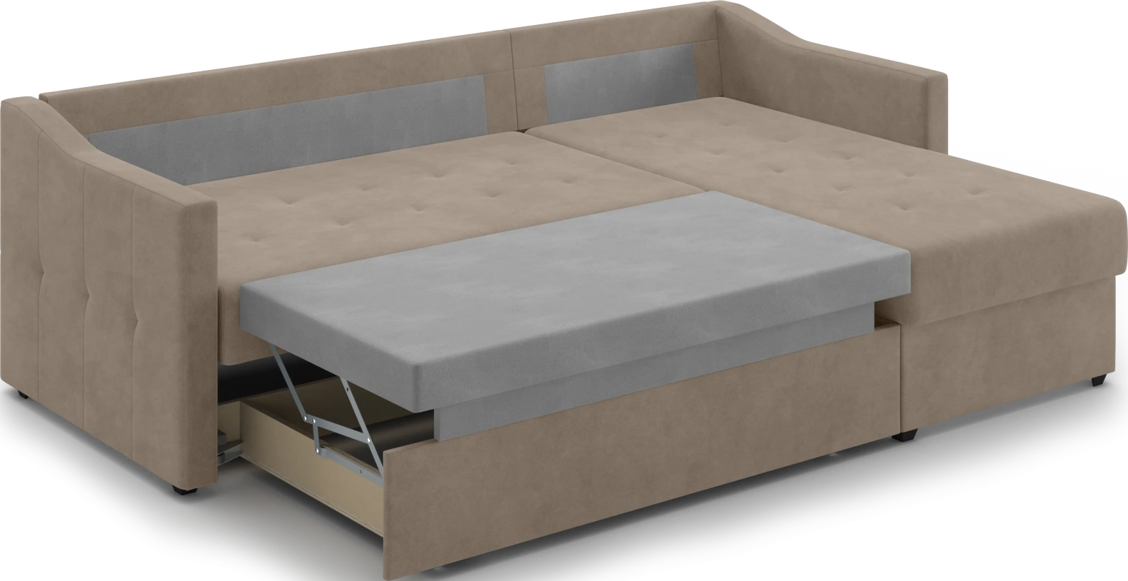 Угловая конструкция позволяет эффективно использовать пространство: диван обеспечивает больше посадочных мест по сравнению с прямыми моделями и дает возможность комфортно расположиться лежа без трансформации. Это особенно важно, если диван используется каждый день, а не только для редких случаев.