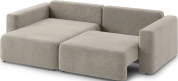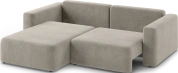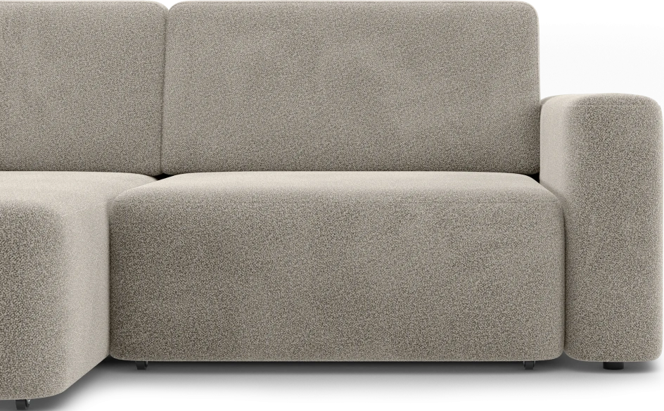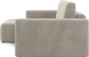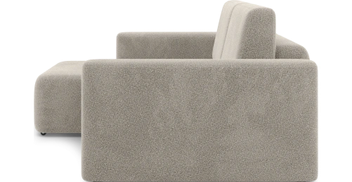 За счет угловой секции модель дает больше вариантов посадки, чем обычный прямой диван: можно сесть вдвоем или удобно вытянуться, не занимая много места в комнате. Это делает его хорошим решением для небольших гостиных или студий, где важен каждый метр.