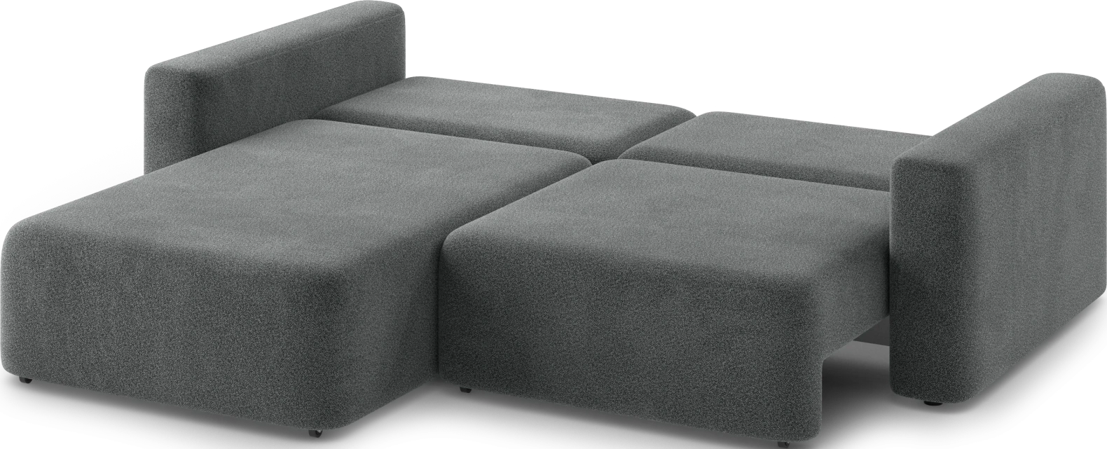 За счет угловой секции модель дает больше вариантов посадки, чем обычный прямой диван: можно сесть вдвоем или удобно вытянуться, не занимая много места в комнате. Это делает его хорошим решением для небольших гостиных или студий, где важен каждый метр.