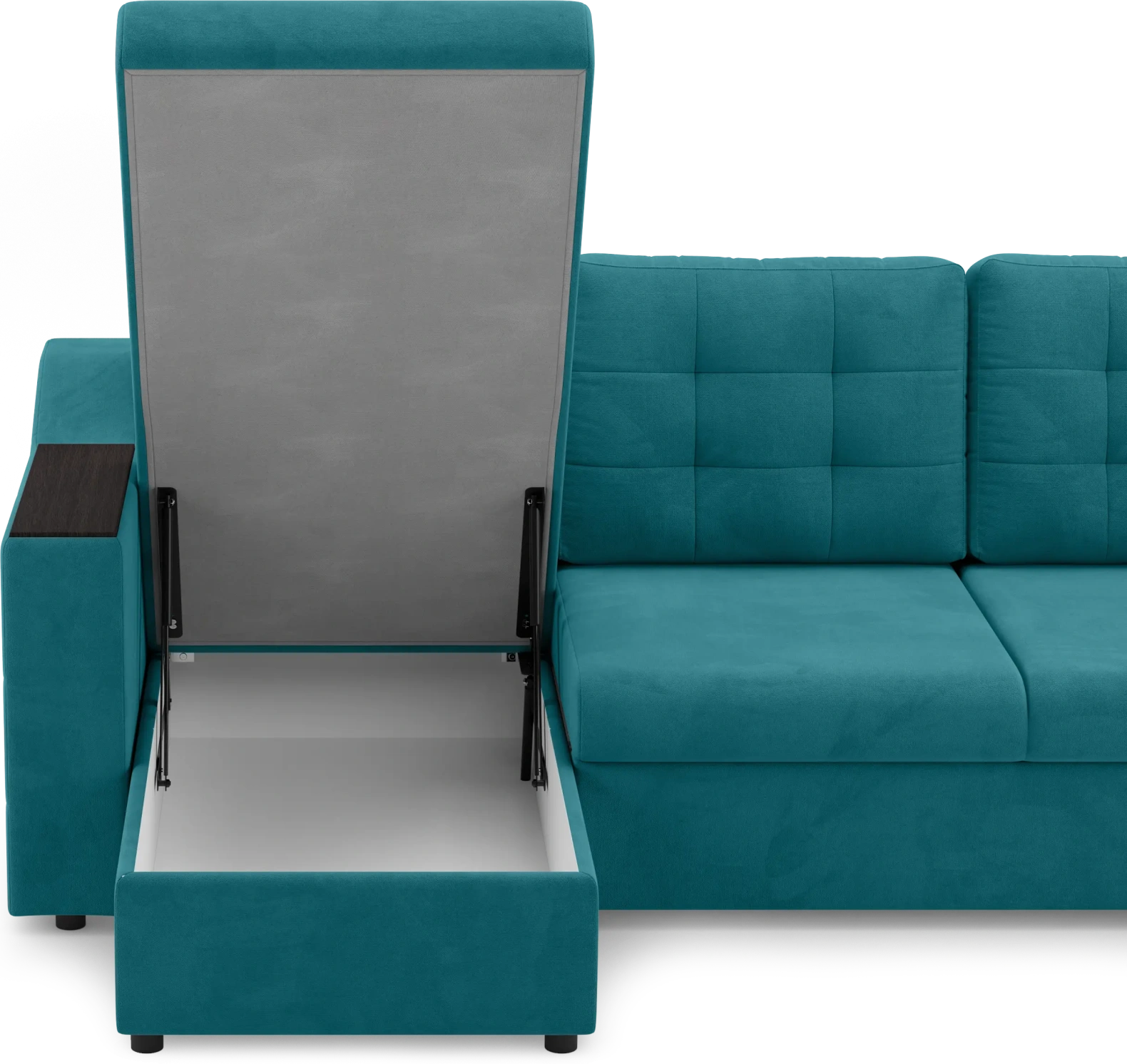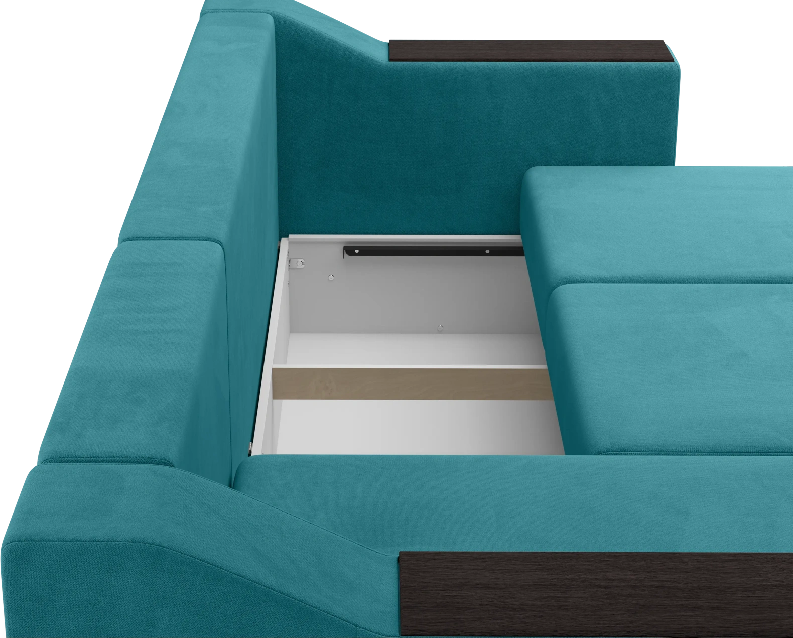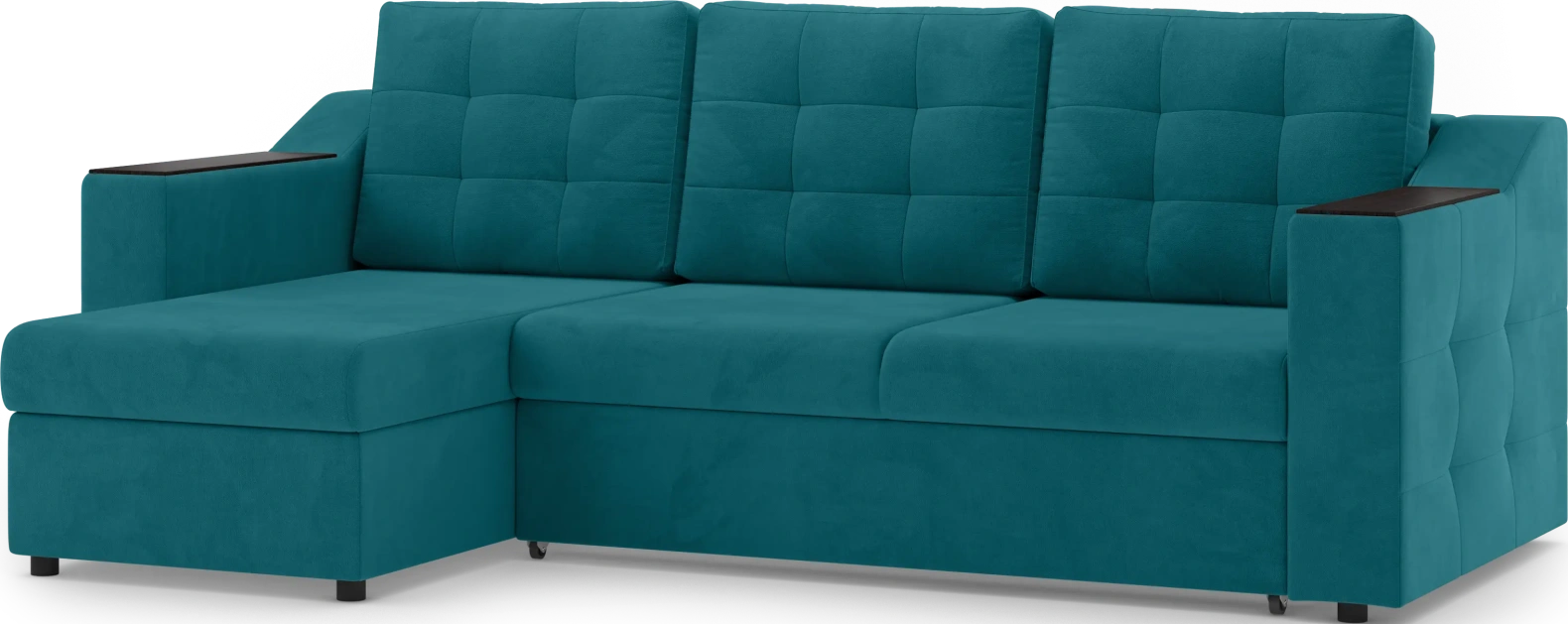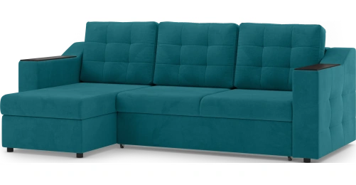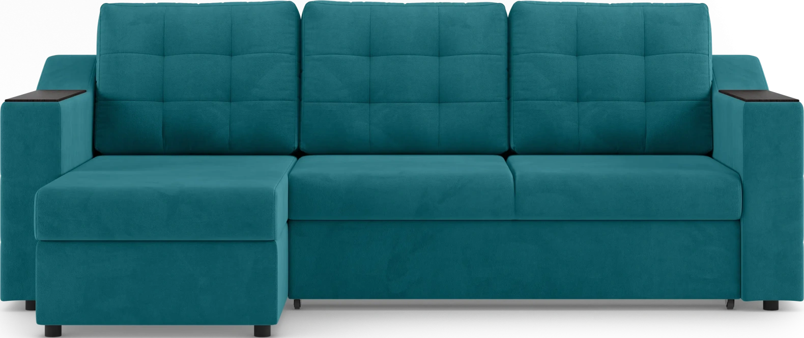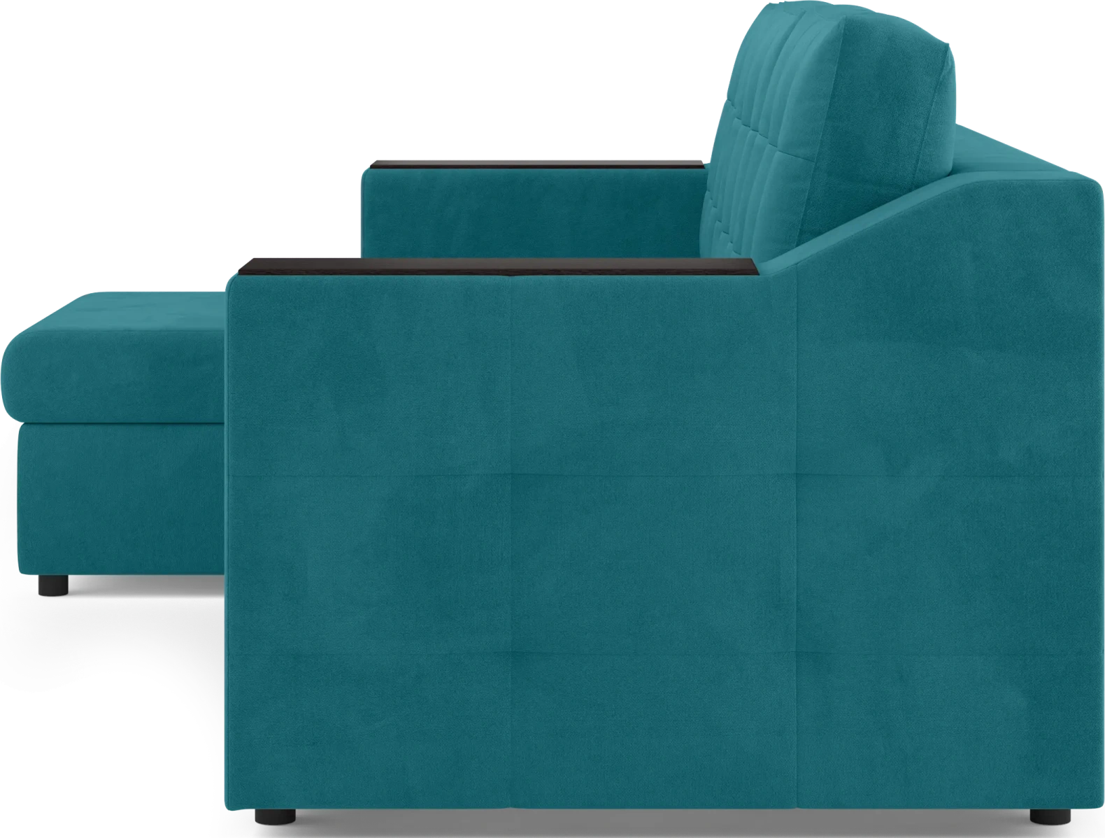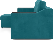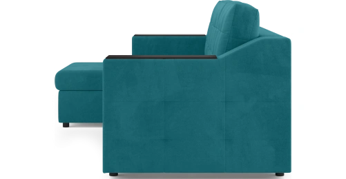 Главная особенность модели — широкие подлокотники с деревянными накладками. Они делают диван визуально аккуратнее, добавляют жесткий акцент в дизайн и удобны в быту: на них можно поставить чашку, телефон или использовать как небольшую полку. Именно эта деталь делает Невада более выразительным и практичным по сравнению с обычными угловыми моделями.