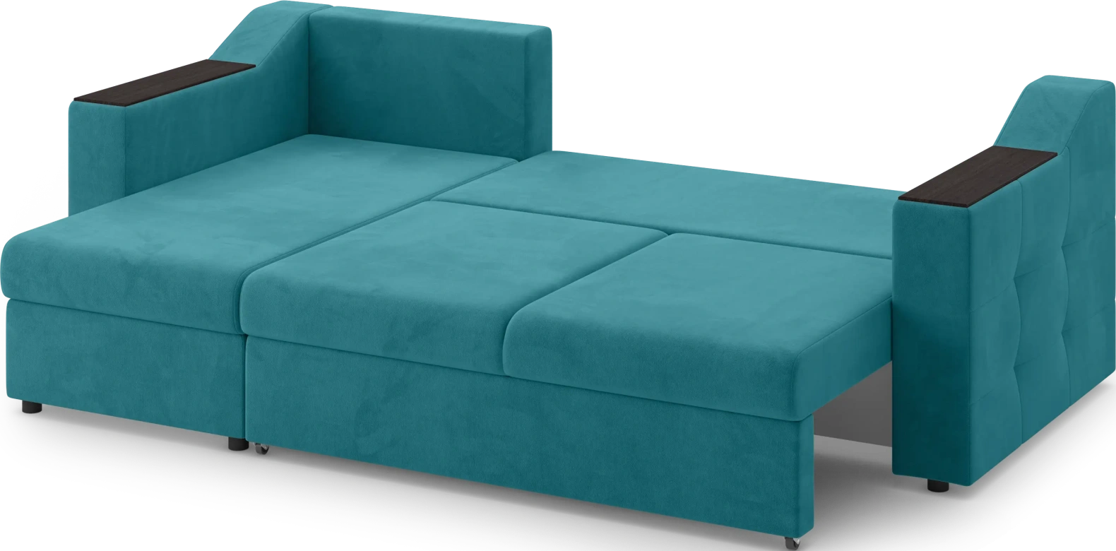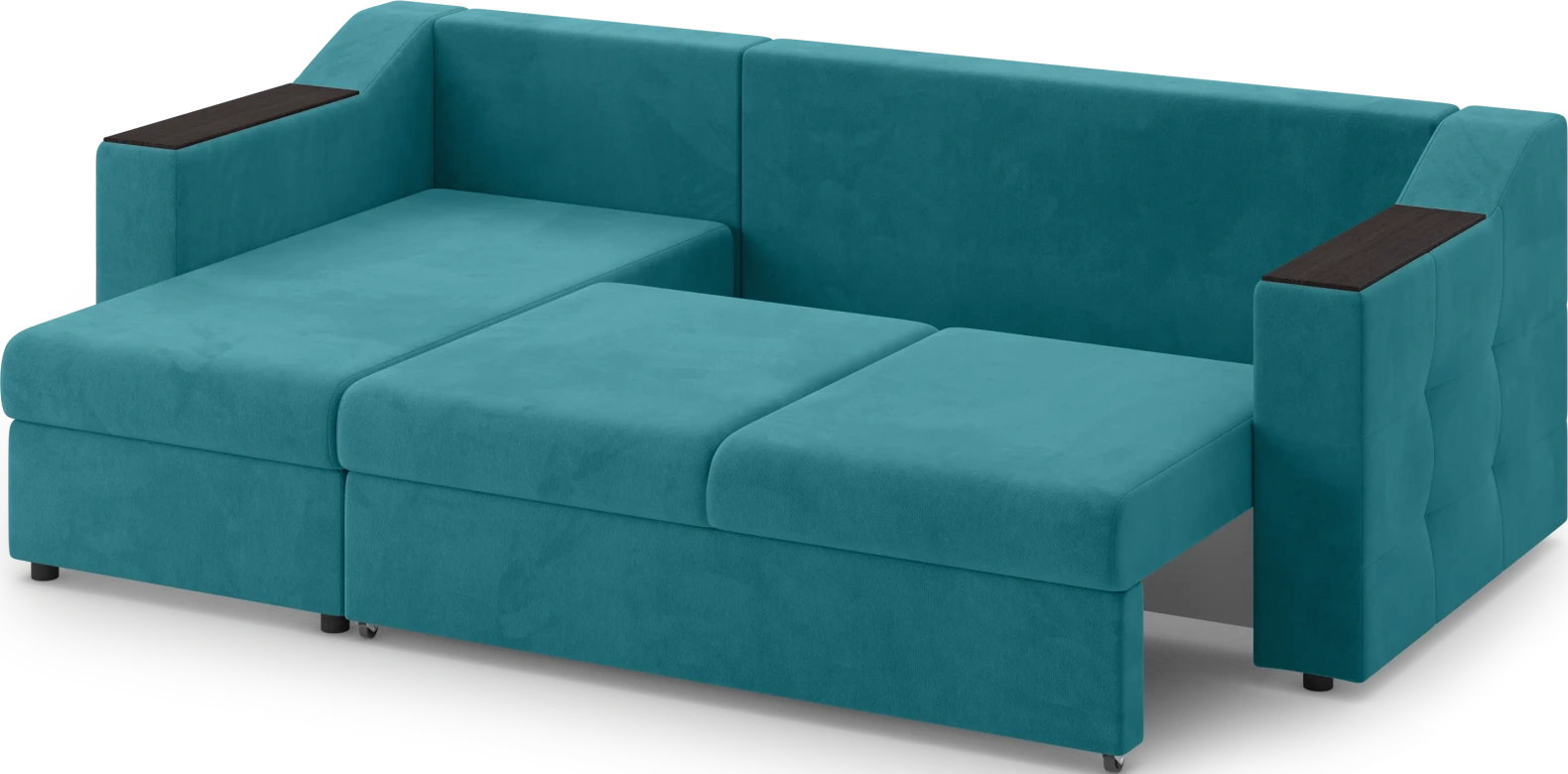Модель сочетает удобную угловую посадку и функциональность: на диване комфортно отдыхать днем, а вечером он легко раскладывается в спальное место за счет механизма «еврокнижка». Такой механизм удобен в повседневном использовании, быстро раскладывается и подходит для ежедневного сна.