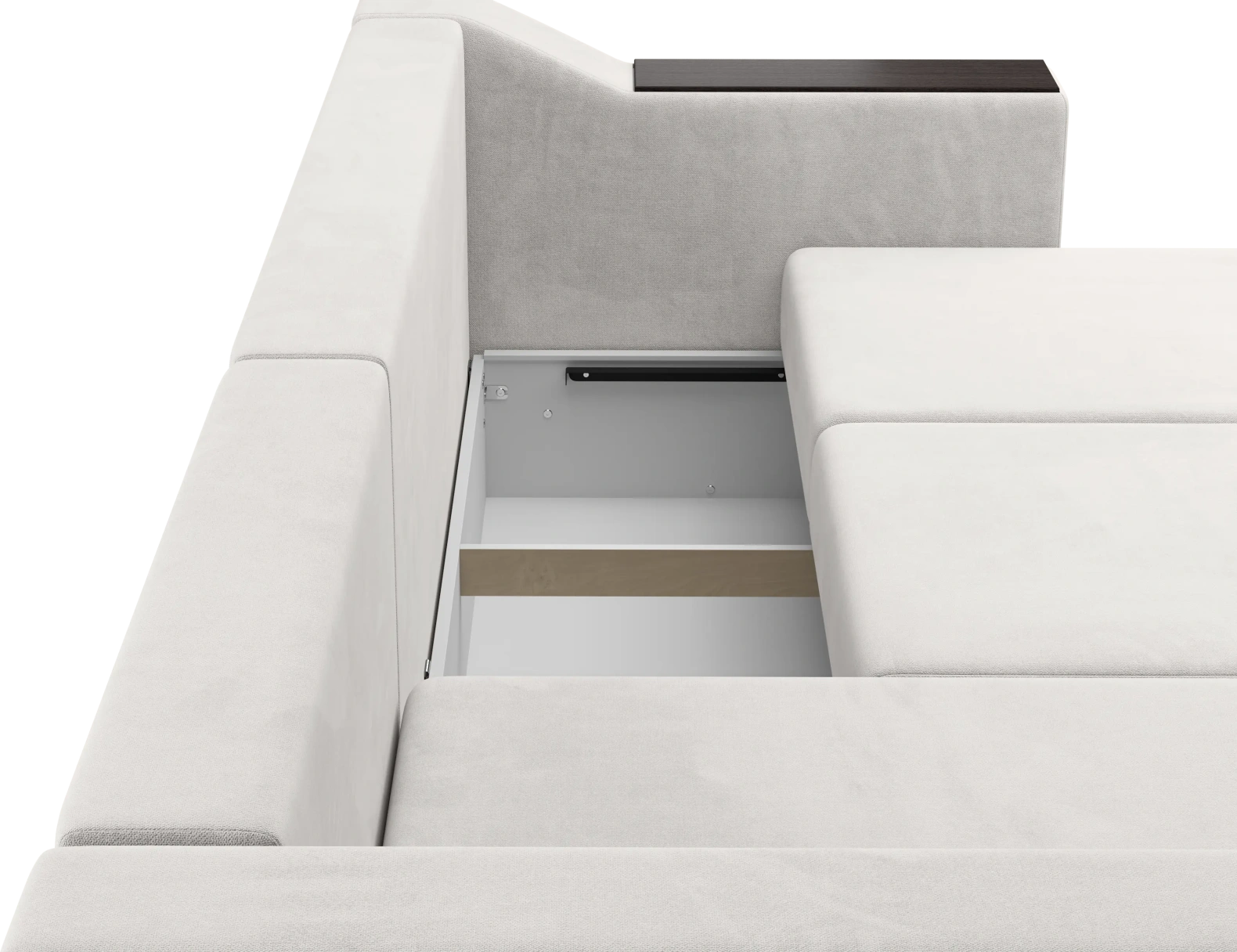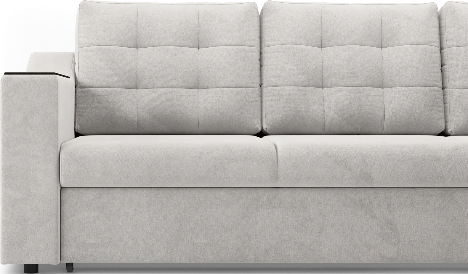 Отдельное преимущество модели — широкие подлокотники с деревянными накладками. Они делают диван визуально аккуратнее, добавляют интерьеру более собранный вид и удобны в быту: на них можно поставить чашку, телефон или использовать как небольшую опору. У Невада это не просто декоративная деталь, а действительно полезный элемент в повседневном использовании.
