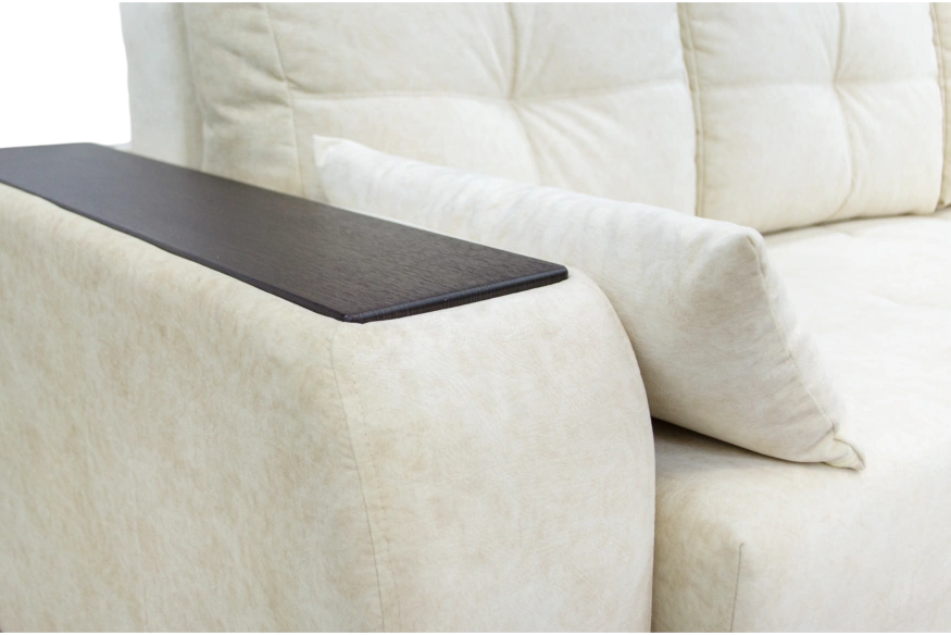 Боковины покрыты термопленкой, которая выдерживает до 60 градусов. На подлокотнике есть выемка для рук, для удобства открывания. Декорированные подлокотники выполнены в цвете Венге. Также производитель предлагает популярные цвета подлокотников для Остина: Орех, Ясень Бланко.