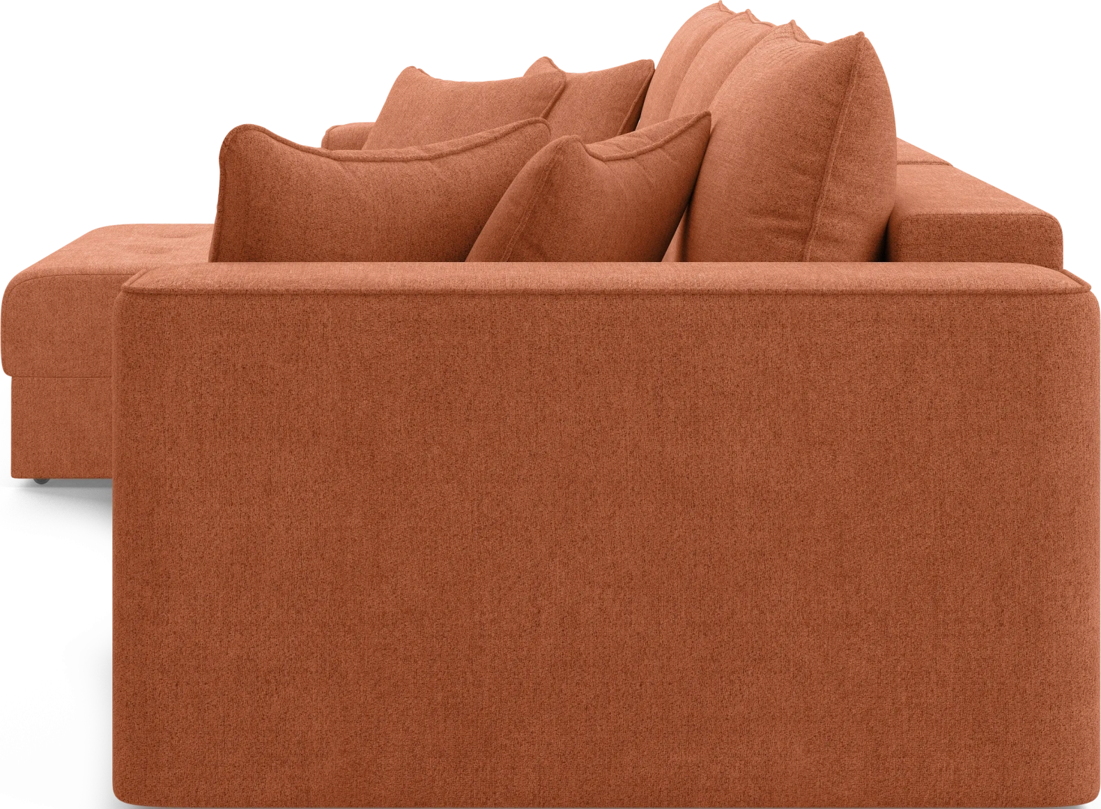 Угловая форма дает больше пространства для отдыха: на диване можно комфортно разместиться как сидя, так и лежа. Это делает его хорошим решением для гостиной, где диван используется каждый день.
