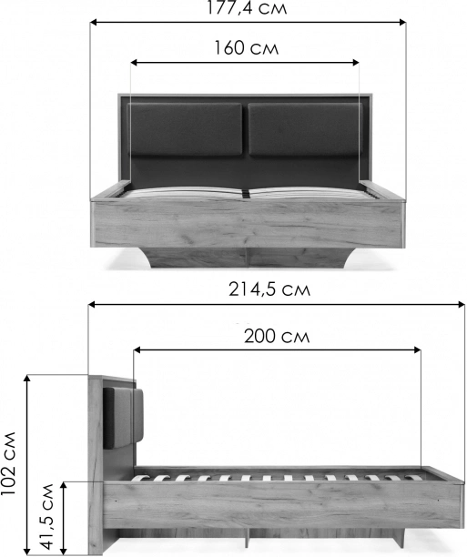 Двуспальная кровать Клауд 160*200, дуб крафт золотой / антрацит