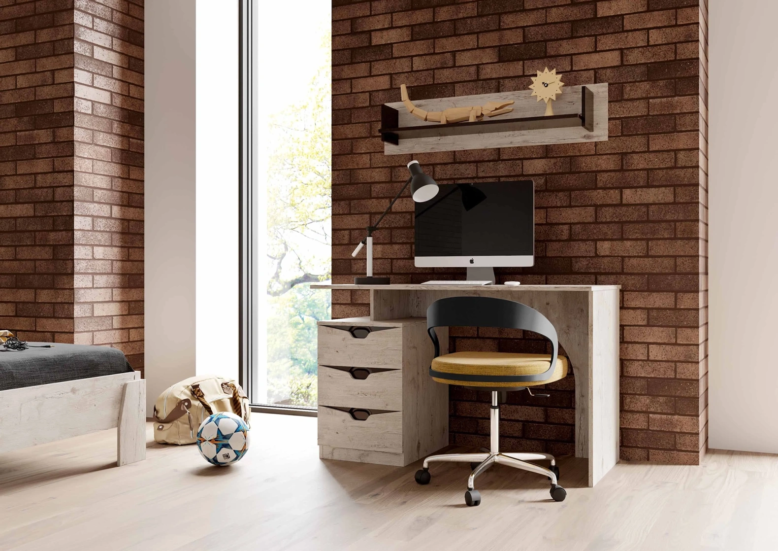 Кровать, Полка, Письменный стол