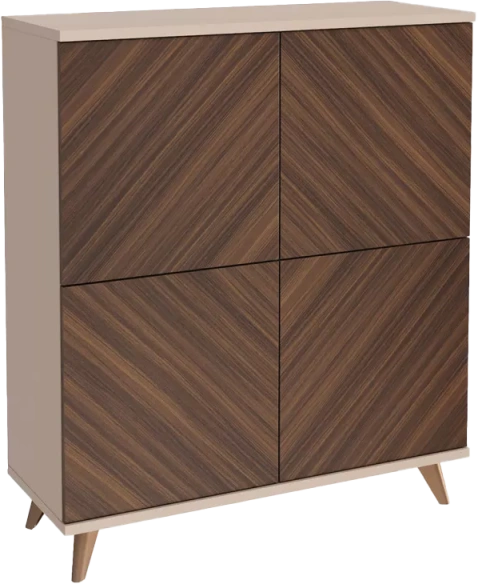 Гостиная Хармони - это воплощение стиля и комфорта. Элегантное сочетание бежевого корпуса и древесного фасада создаёт атмосферу гармонии и уюта в интерьере. Благодаря современным механизмам Push to Open дверцы открываются легко и бесшумно, обеспечивая удобство использования и сохраняя эстетичный внешний вид мебели.