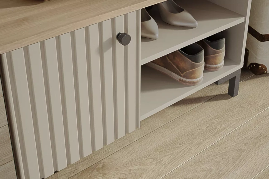 корпуса закромлены кромками ПВХ и ABS. Фасады изготовлены из 19 мм МДФ плиты цвет, укрытой пленкой ПВХ с эффектом Soft Touch.