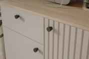 корпуса закромлены кромками ПВХ и ABS. Фасады изготовлены из 19 мм МДФ плиты цвет, укрытой пленкой ПВХ с эффектом Soft Touch.