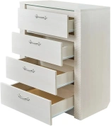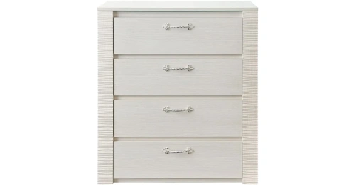Комод оснащен четырьмя выдвижными ящиками на роликовых направляющих. Под столешницей имеется стеклянная панель (5 мм), предназначенная для установки светильника. Комплект подсветки (светильник и блок питания) приобретается отдельно. Блок питания рассчитан на подключение шести светильников.