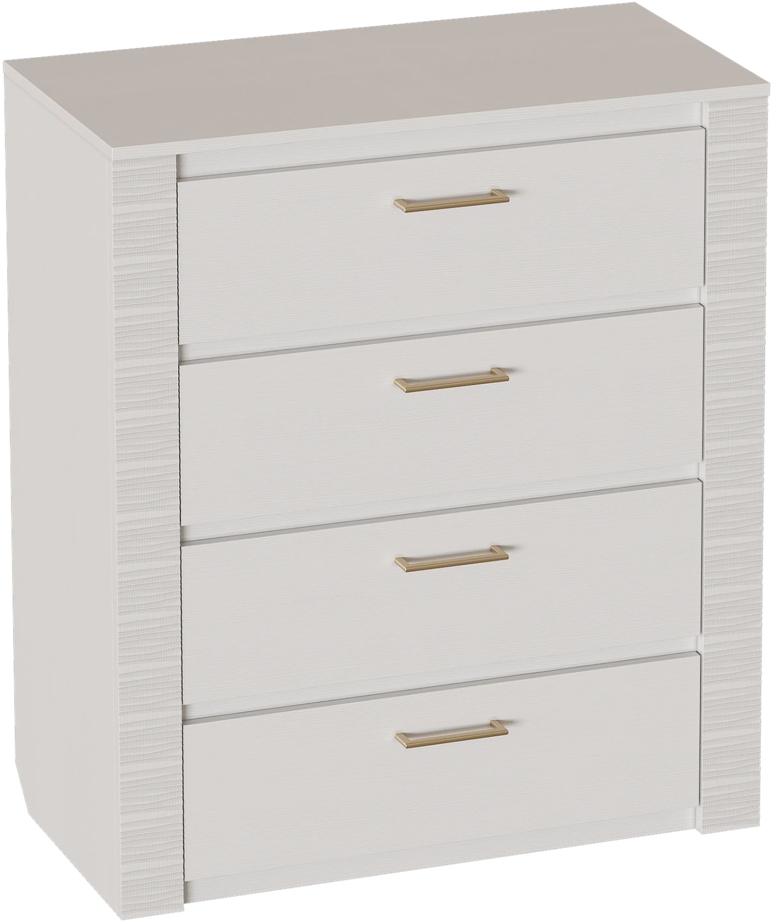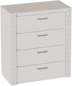 Комод оснащен четырьмя выдвижными ящиками на роликовых направляющих. Под столешницей имеется стеклянная панель (5 мм), предназначенная для установки светильника. Комплект подсветки (светильник и блок питания) приобретается отдельно. Блок питания рассчитан на подключение шести светильников.