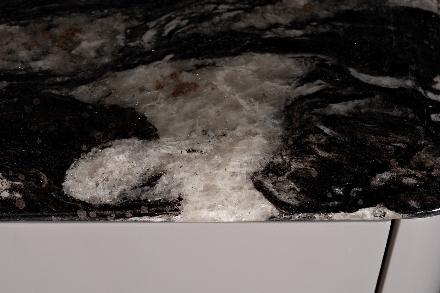 Великолепный дизайнерский комод с мраморной столешницей станет изысканным акцентом в интерьере гостиной, спальни или кабинета. Сдержанный дизайн в стиле неоклассики, благородная цветовая гамма и натуральные материалы подчеркивают безупречный вкус своего обладателя. Четкие линии корпуса, декорированного изящными вставками, придают комоду графичность и создают ощущение архитектурной завершенности. Модель оснащена вместительными отделениями с дверцами, скрывающими от посторонних глаз личные вещи и предметы быта. Комод с мраморной столешницей гармонично дополнит собой обстановку, оформленную в стилистике неоклассики, минимализма или ар-деко.Столешница вырезана из натурального мрамора! Рисунок и цвет каждой столешницы индивидуален, неповторим и уникален!