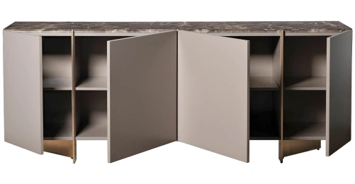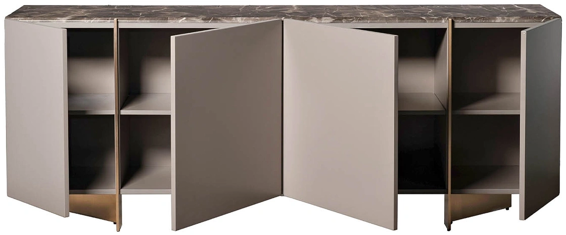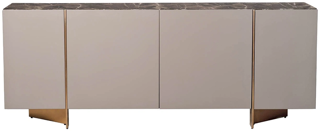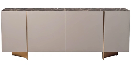 Эффектный комод в современном стиле станет красивым и главное – полезным дополнением интерьера спальни, гостиной или квартиры-студии. Вместительный и лаконичный, он универсален в плане компоновки и сочетаний с другой мебелью современной обстановки. Современный длинный комод можно использовать в качестве тумбы под телевизор, места для хранения личных вещей, постельного белья, одежды. Верхняя крышка выполнена из МДФ в пленке с эффектом мраморного покрытия. Необычные опоры из металла являются главным декоративным акцентом, который сразу обращает на себя внимание. Garda Decor предлагает купить комод в спальню или гостиную, дополнив его мебелью в стилистике современного ар-деко.