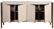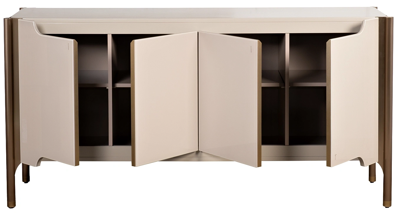 Лаконичный силуэт, гладкие поверхности и элегантные детали делают светлый комод Grimaldi универсальным элементом современных интерьеров. Вместительные полки скрываются за изысканной геометрией фасадов, создавая баланс между сдержанной эстетикой и функциональностью. Комод со стеклянным фасадом эффектно отражает свет, визуально облегчая пространство и добавляя ему глубины. Идеальное решение для гостиной, спальни или столовой, где важны не только удобство хранения, но и безупречный стиль.