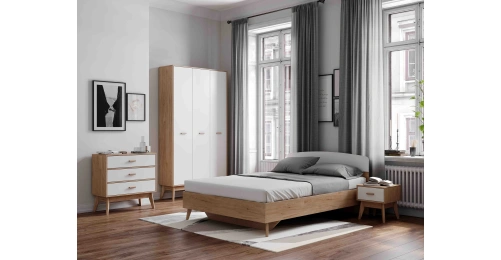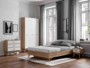 Материалы отличаются экологичностью, прочностью, долго сохраняют внешнюю привлекательность, просты в уходе. В комплект к изделию можно подобрать кровать, шкаф, тумбу, стеллаж, напольное или навесное зеркало этой же серии.