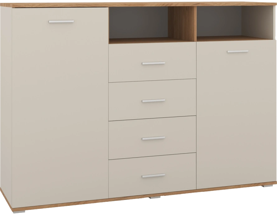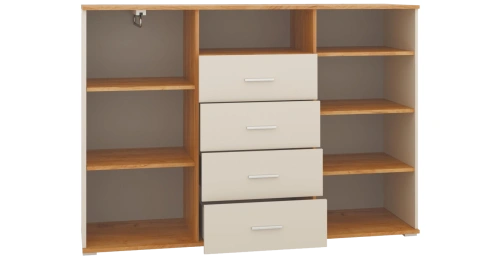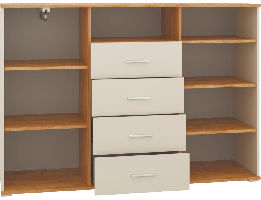 Комод Кассандра, с четырьмя и полками, дуб крафт золотой / кашемир