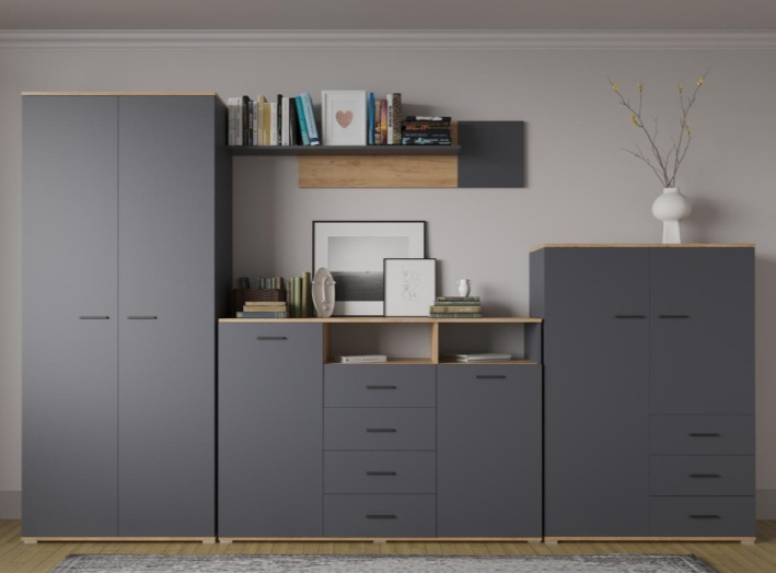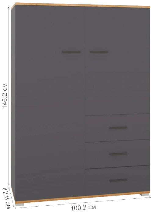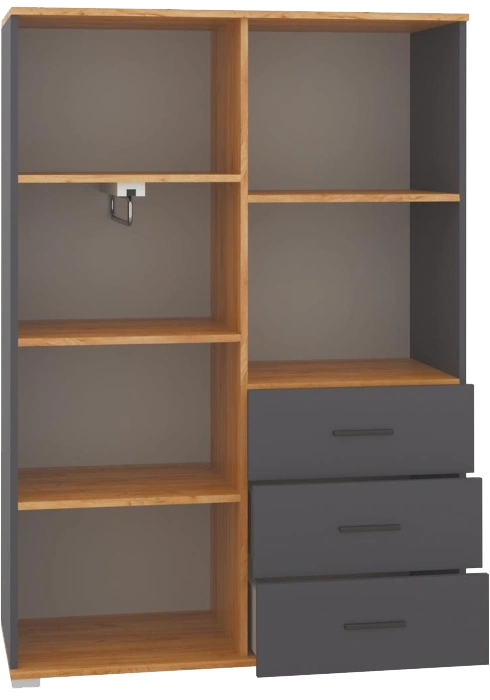 Комод Кассандра, с тремя ящиками и полками, дуб крафт золотой / антрацит
